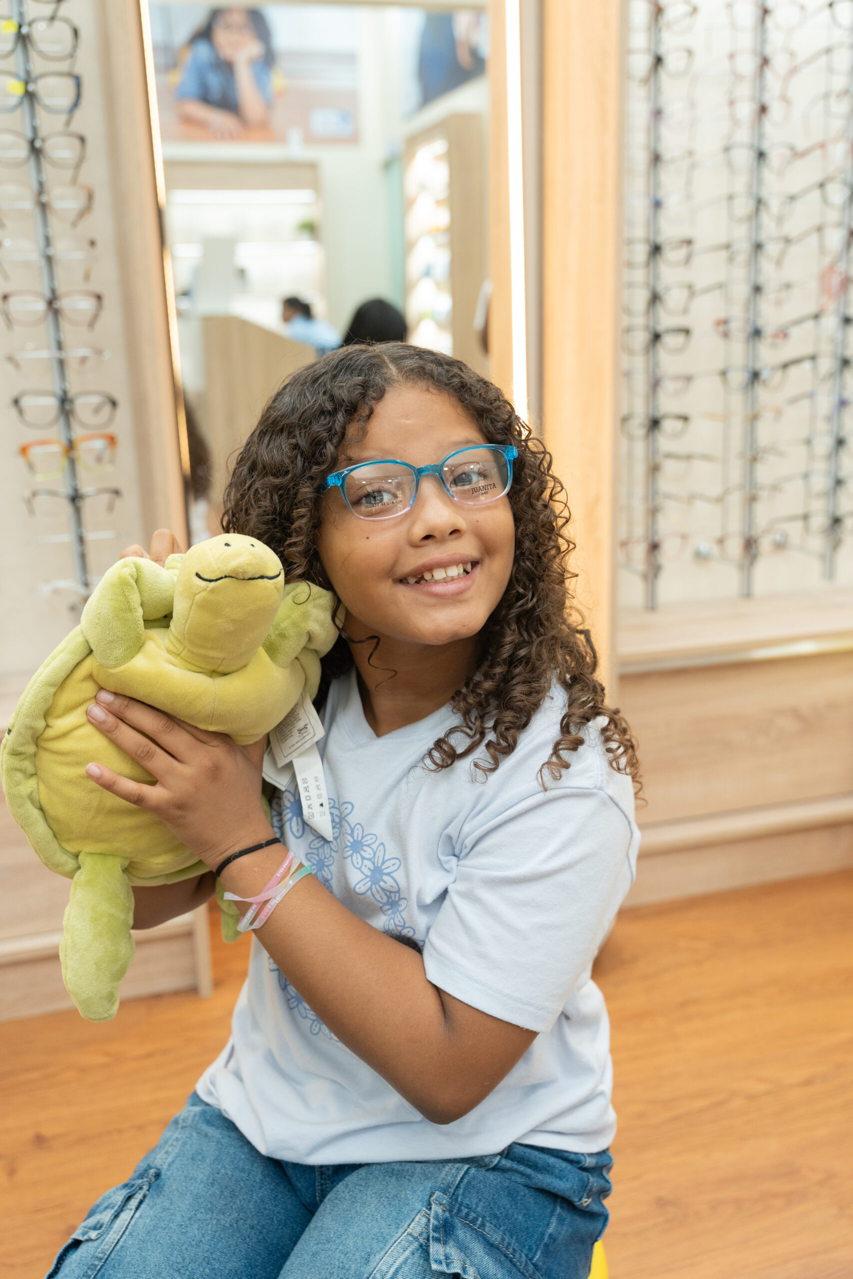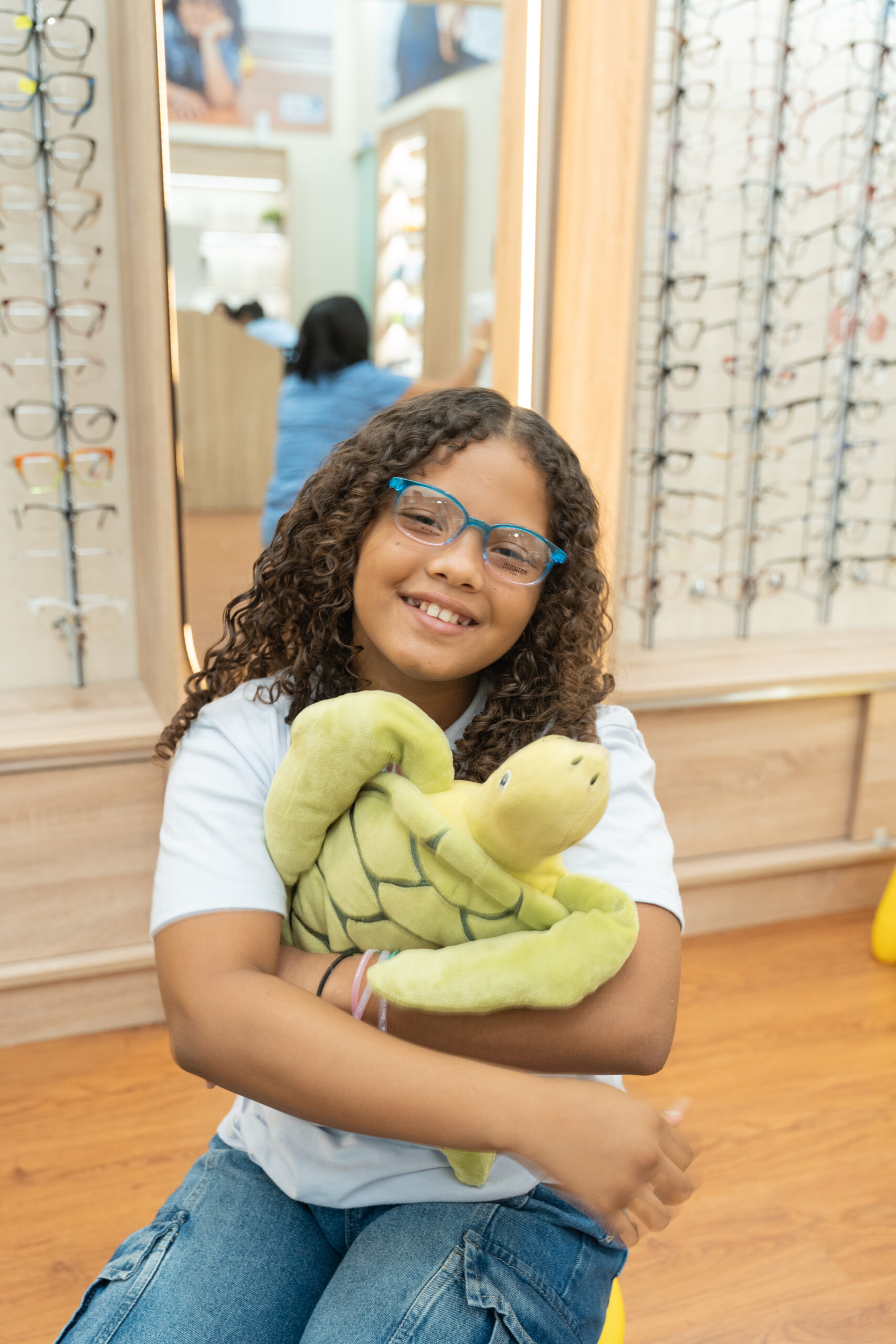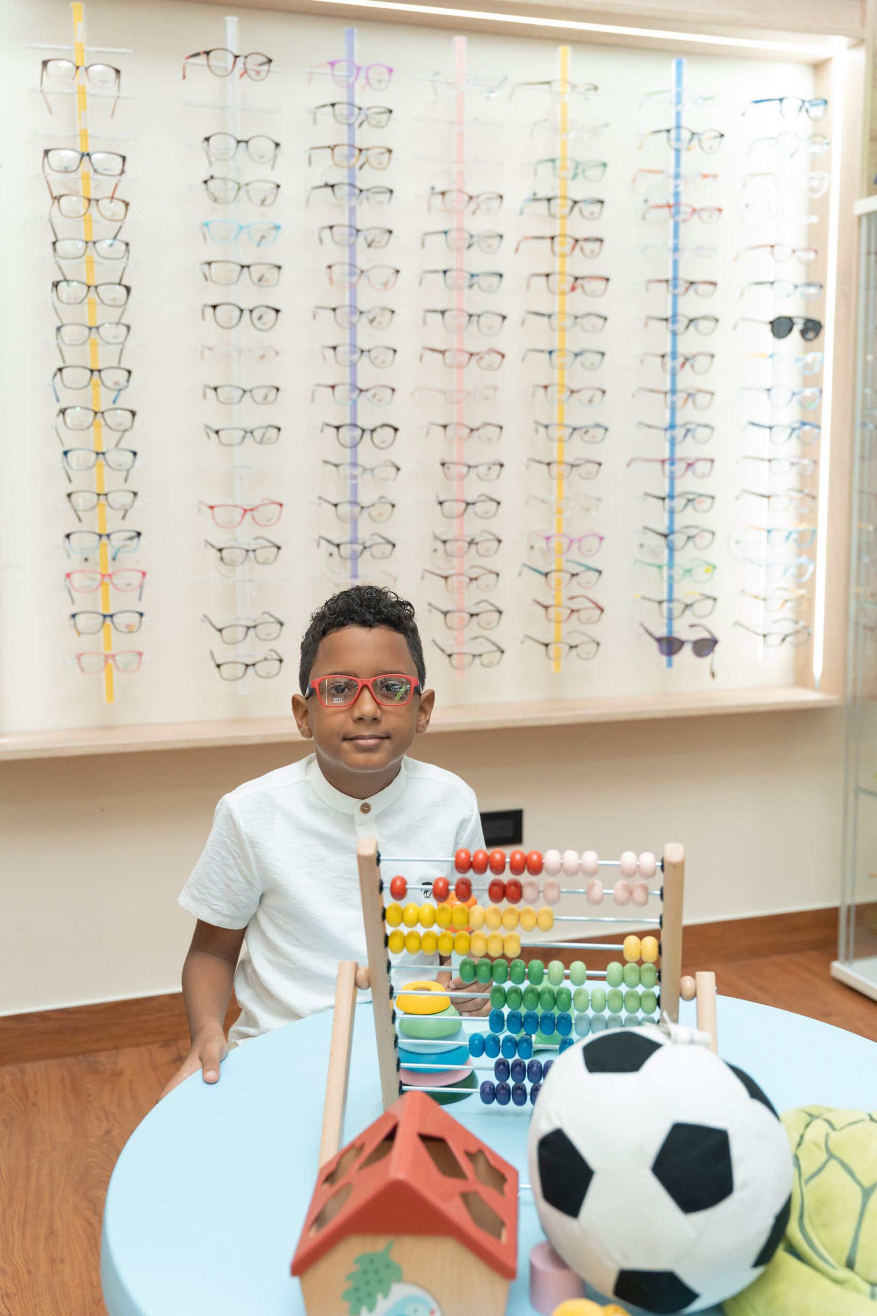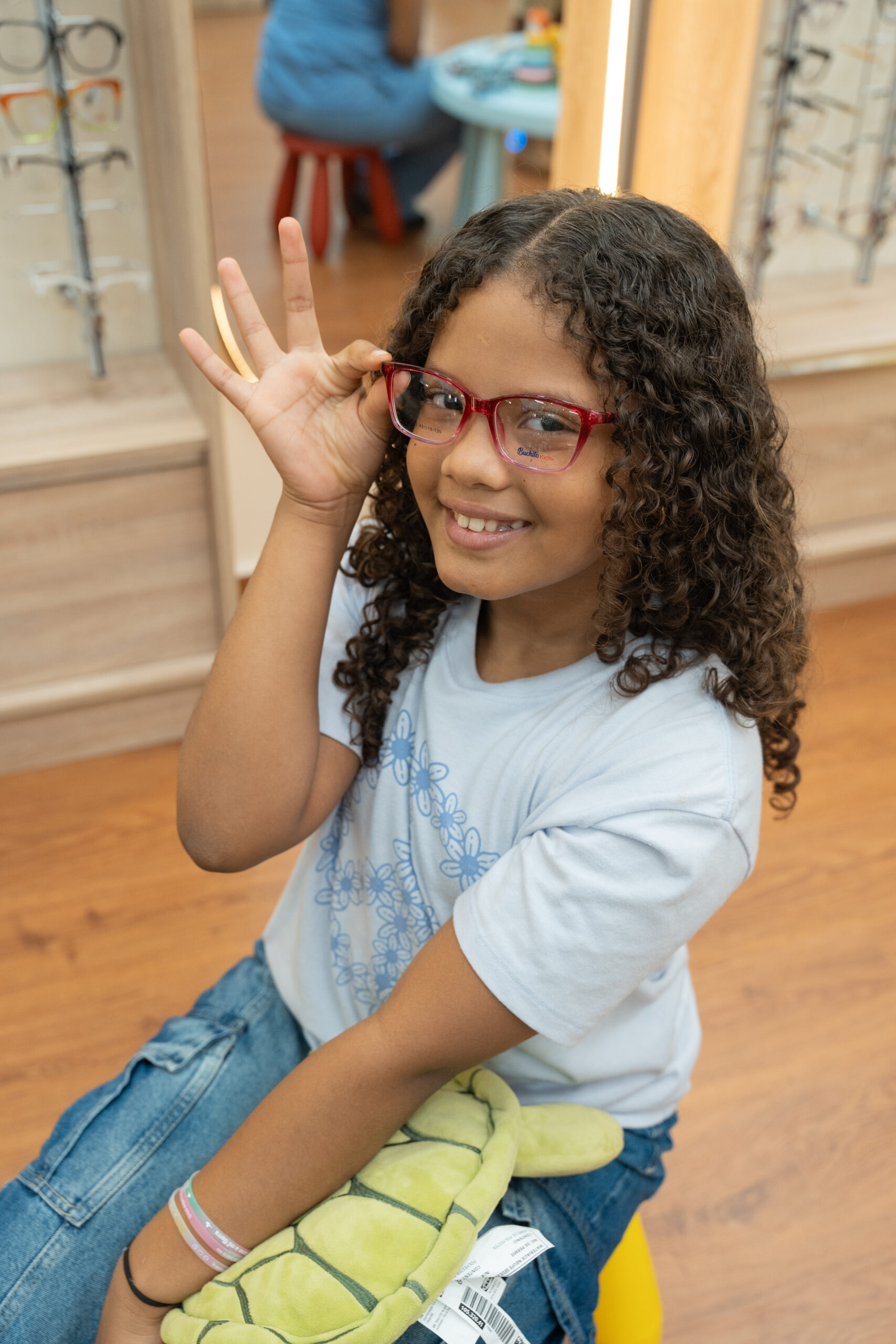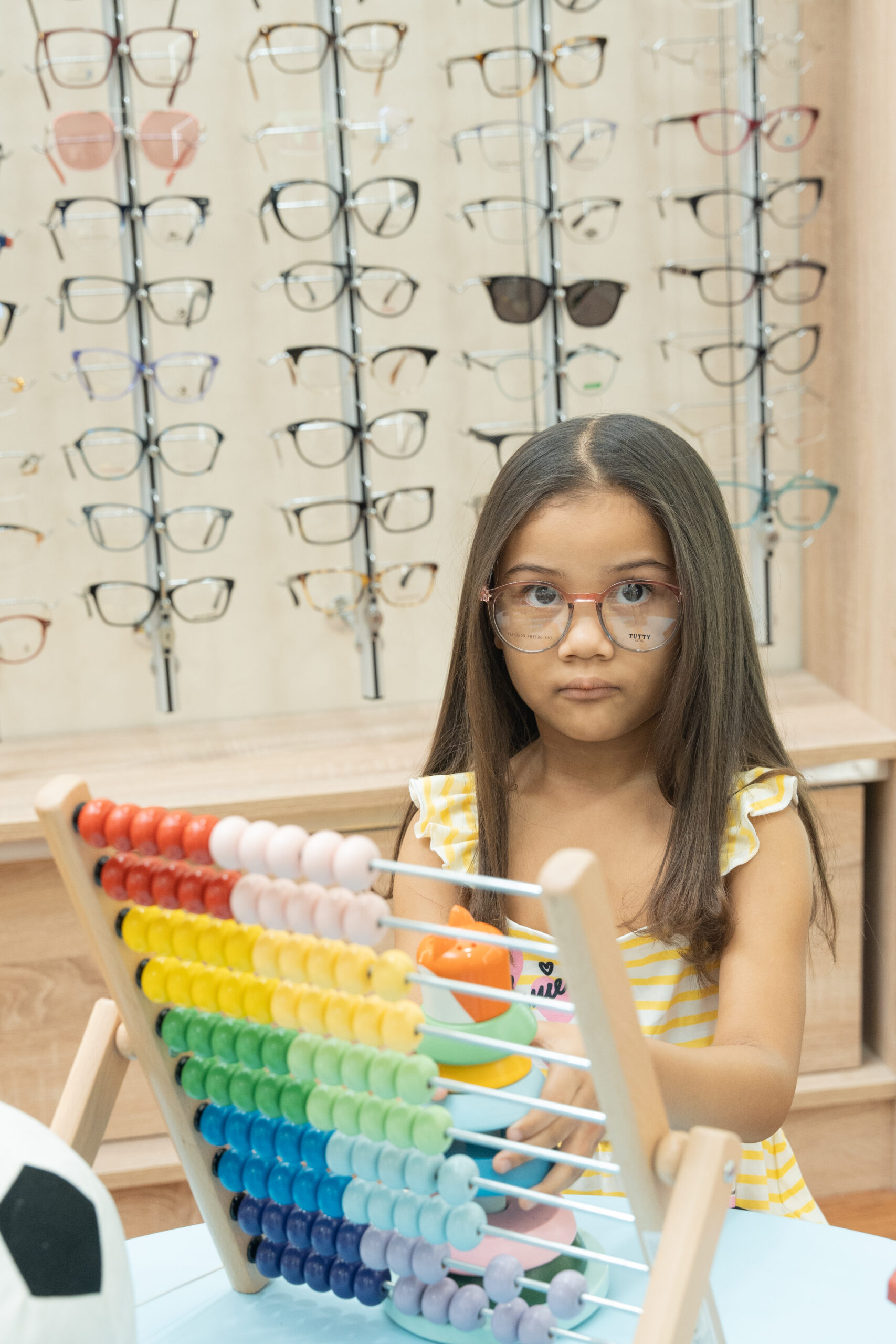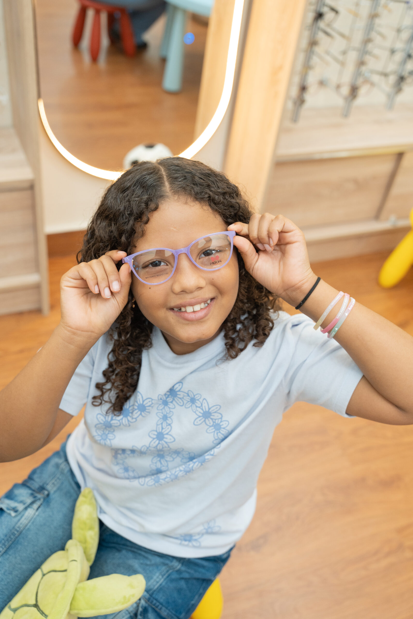 Es un espacio dedicado al cuidado visual infantil, con lentes y accesorios coloridos y resistentes.