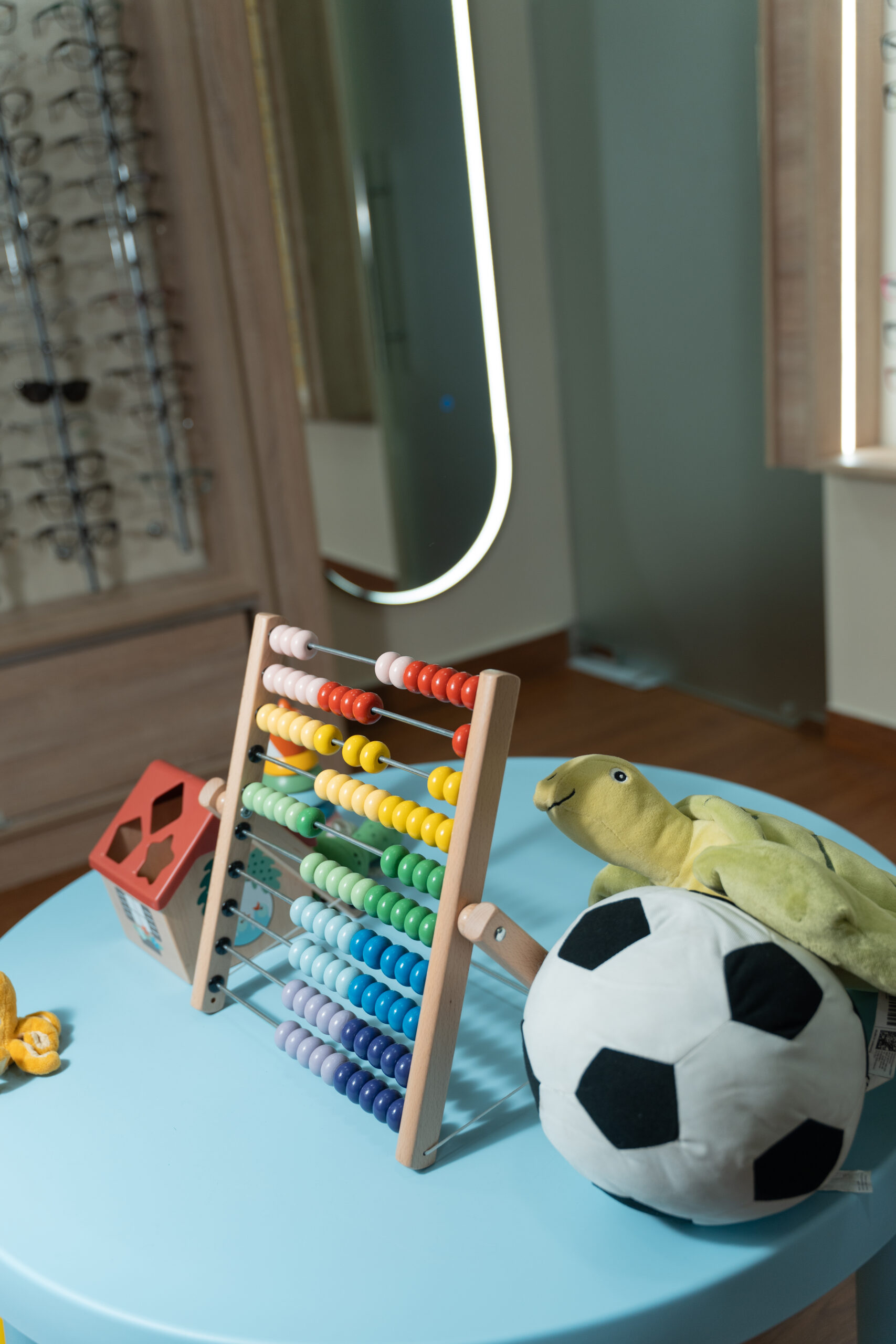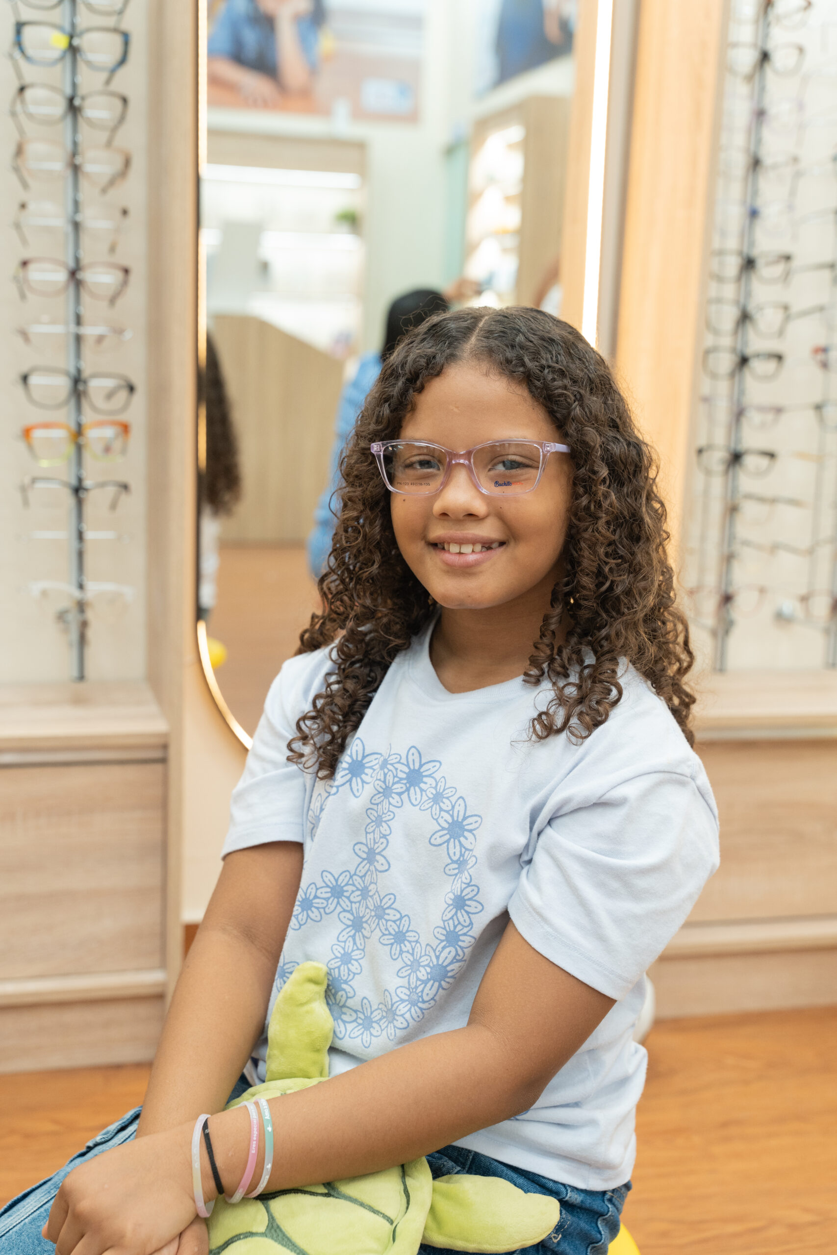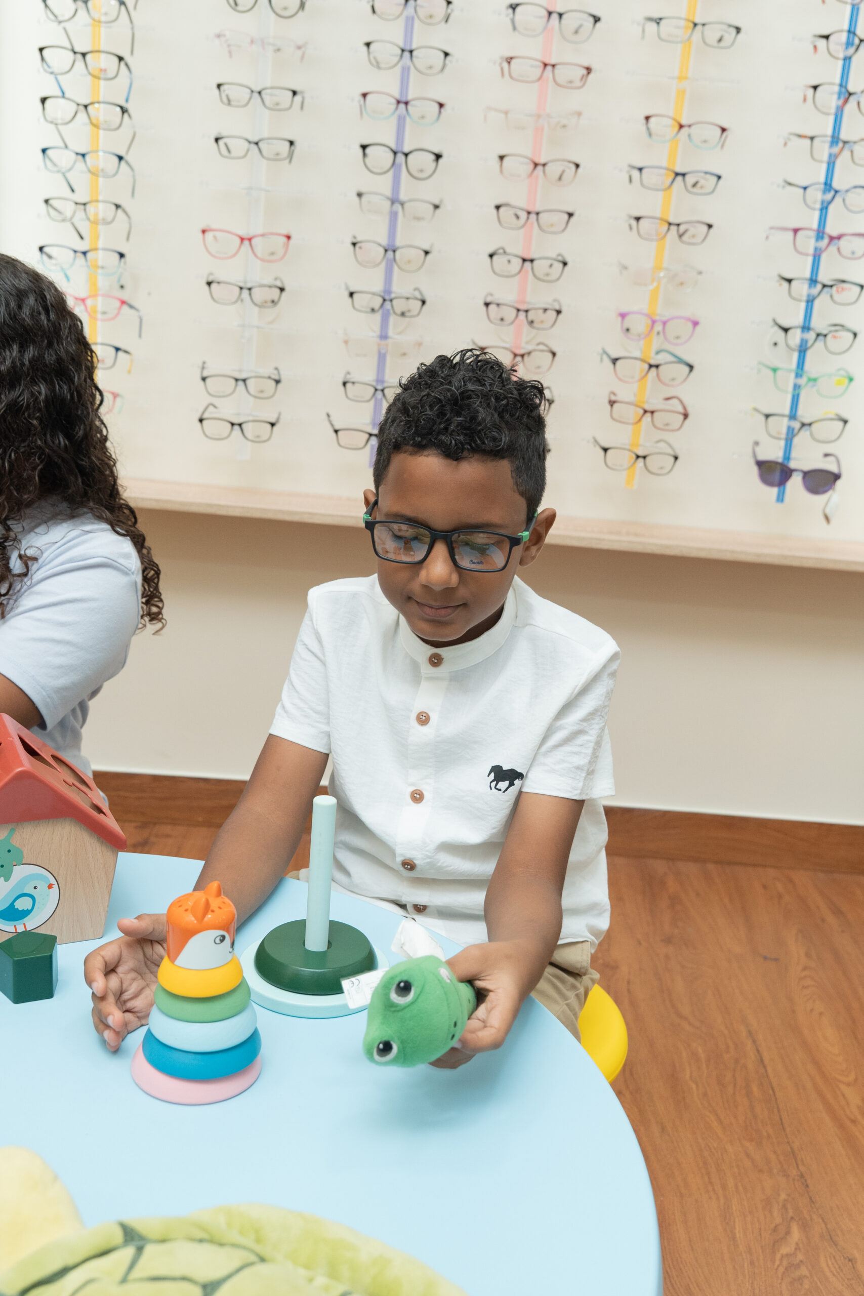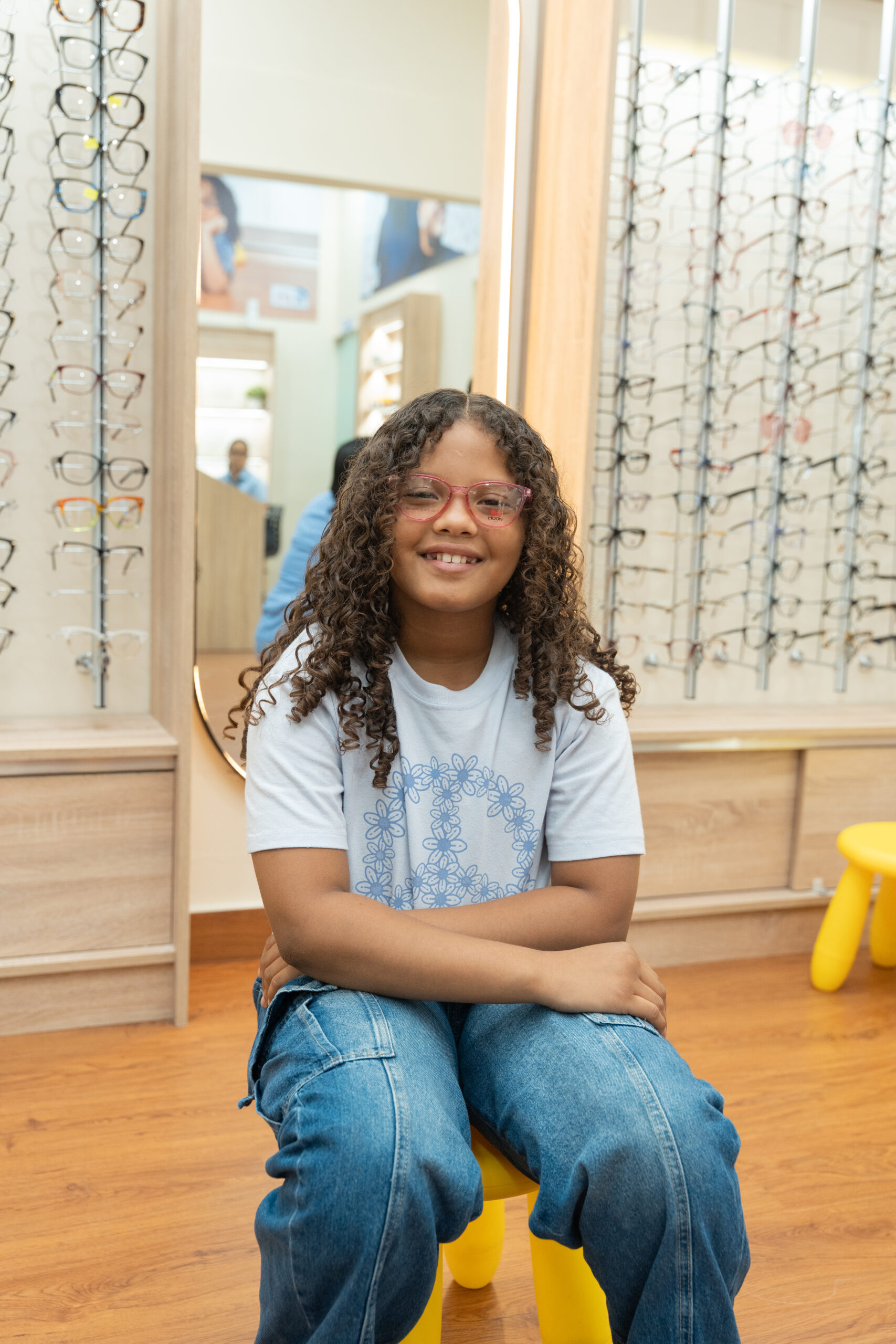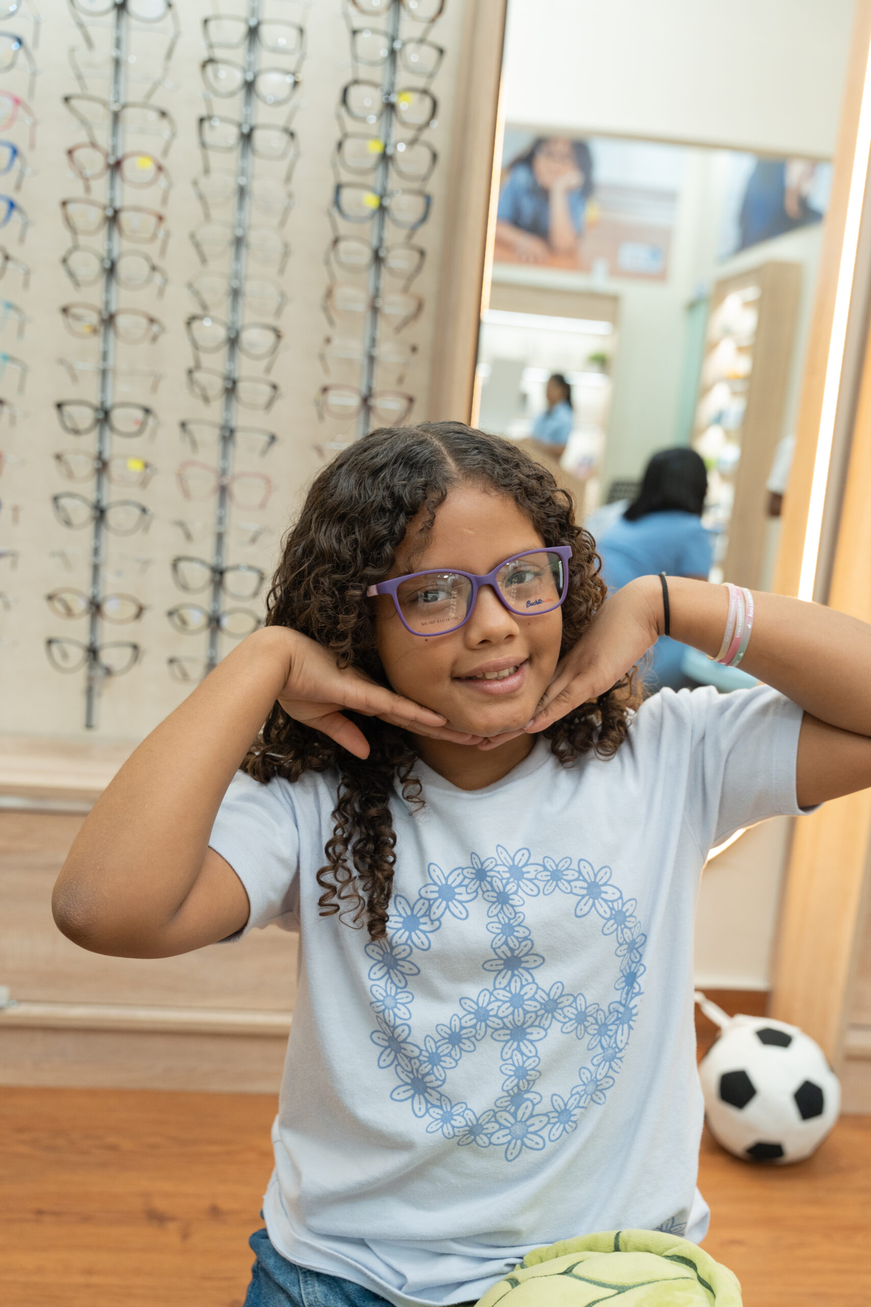 Es un espacio dedicado al cuidado visual infantil, con lentes y accesorios coloridos y resistentes.