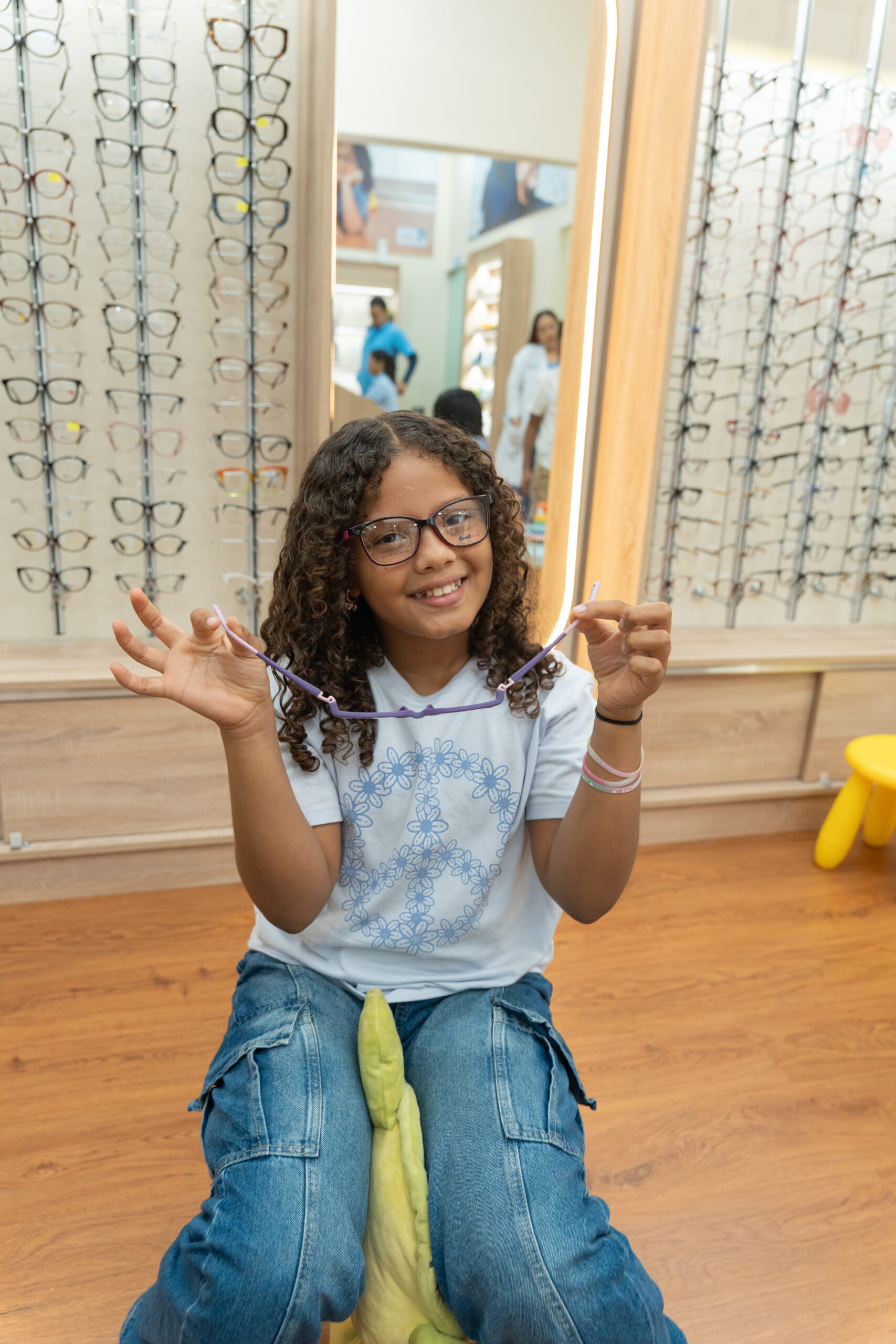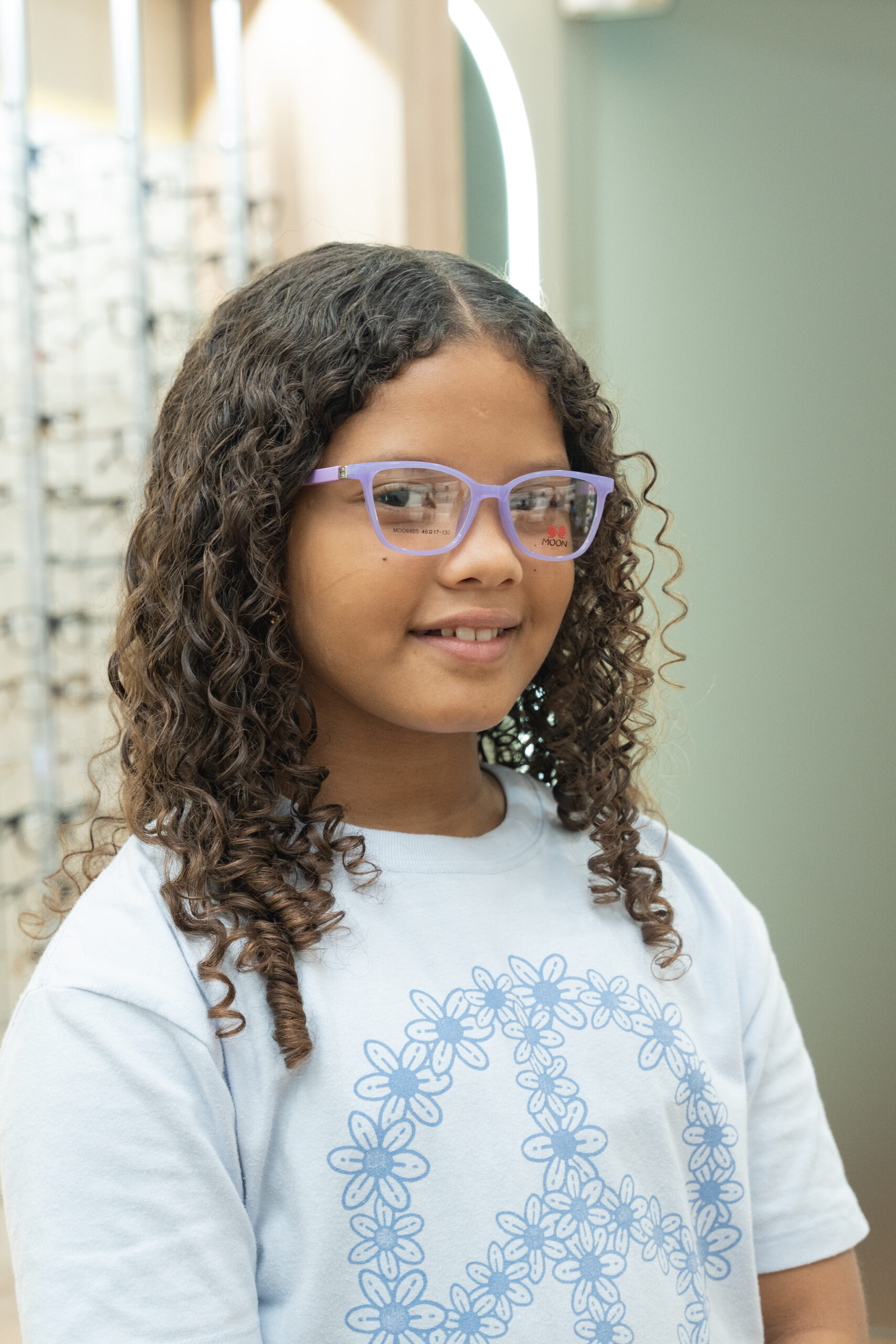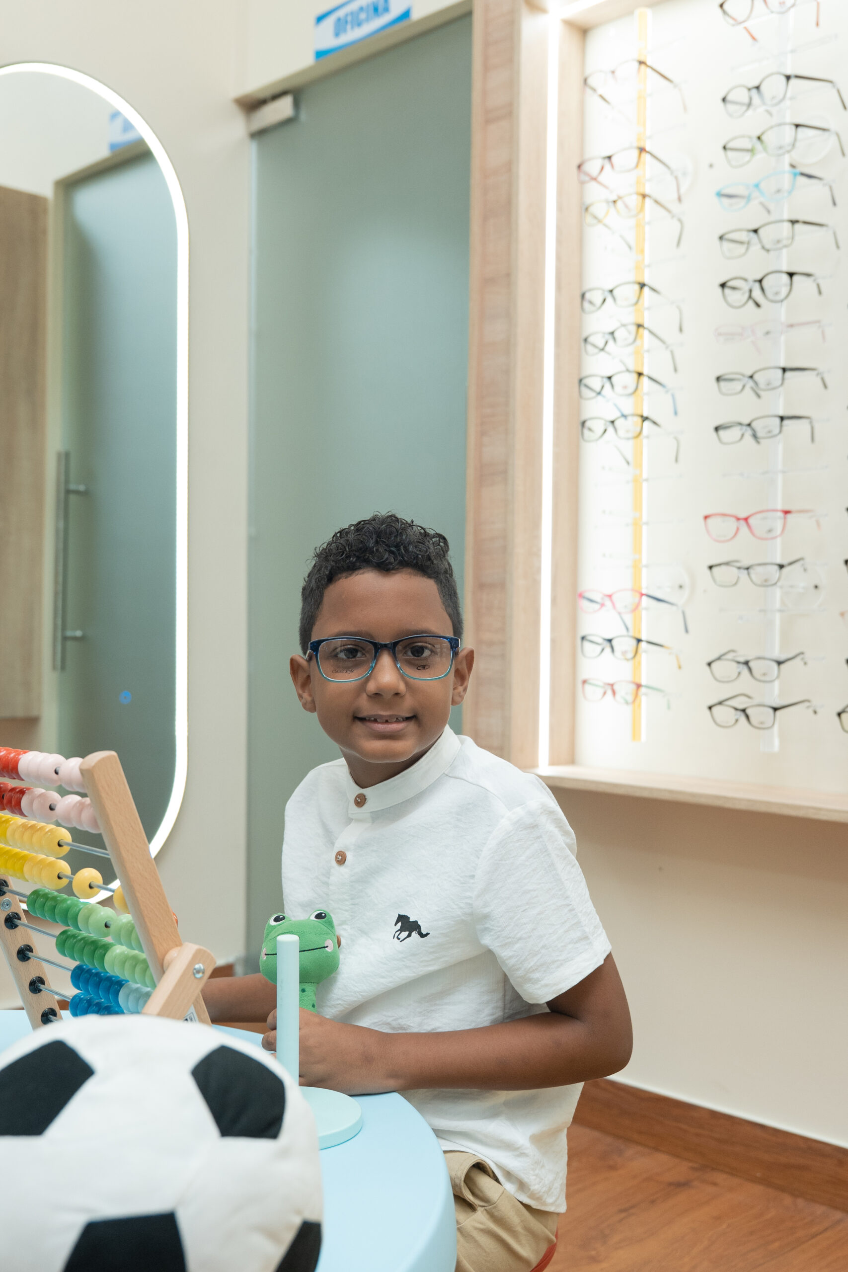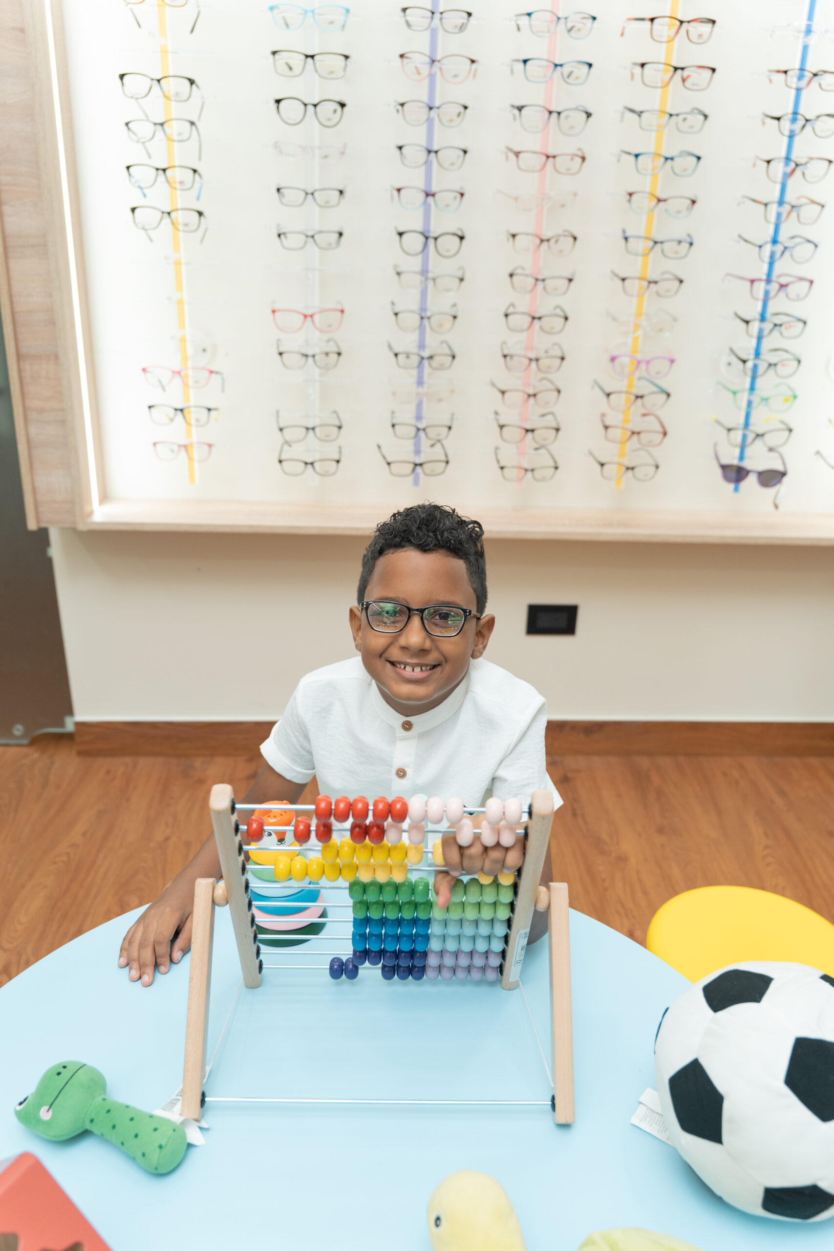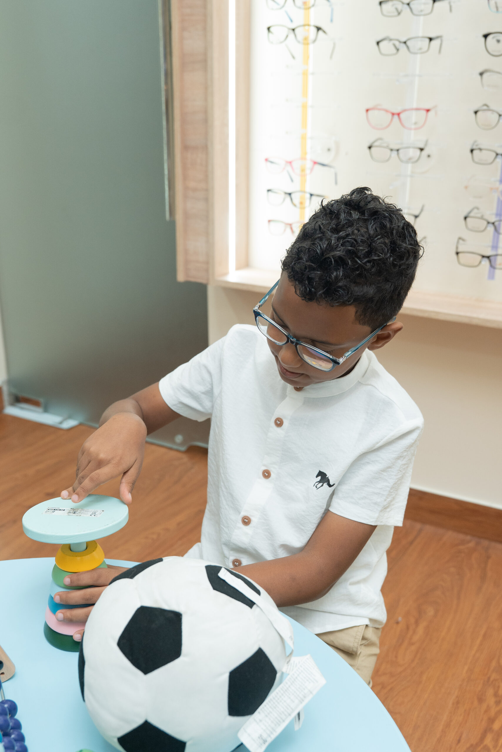 Es un espacio dedicado al cuidado visual infantil, con lentes y accesorios coloridos y resistentes.
