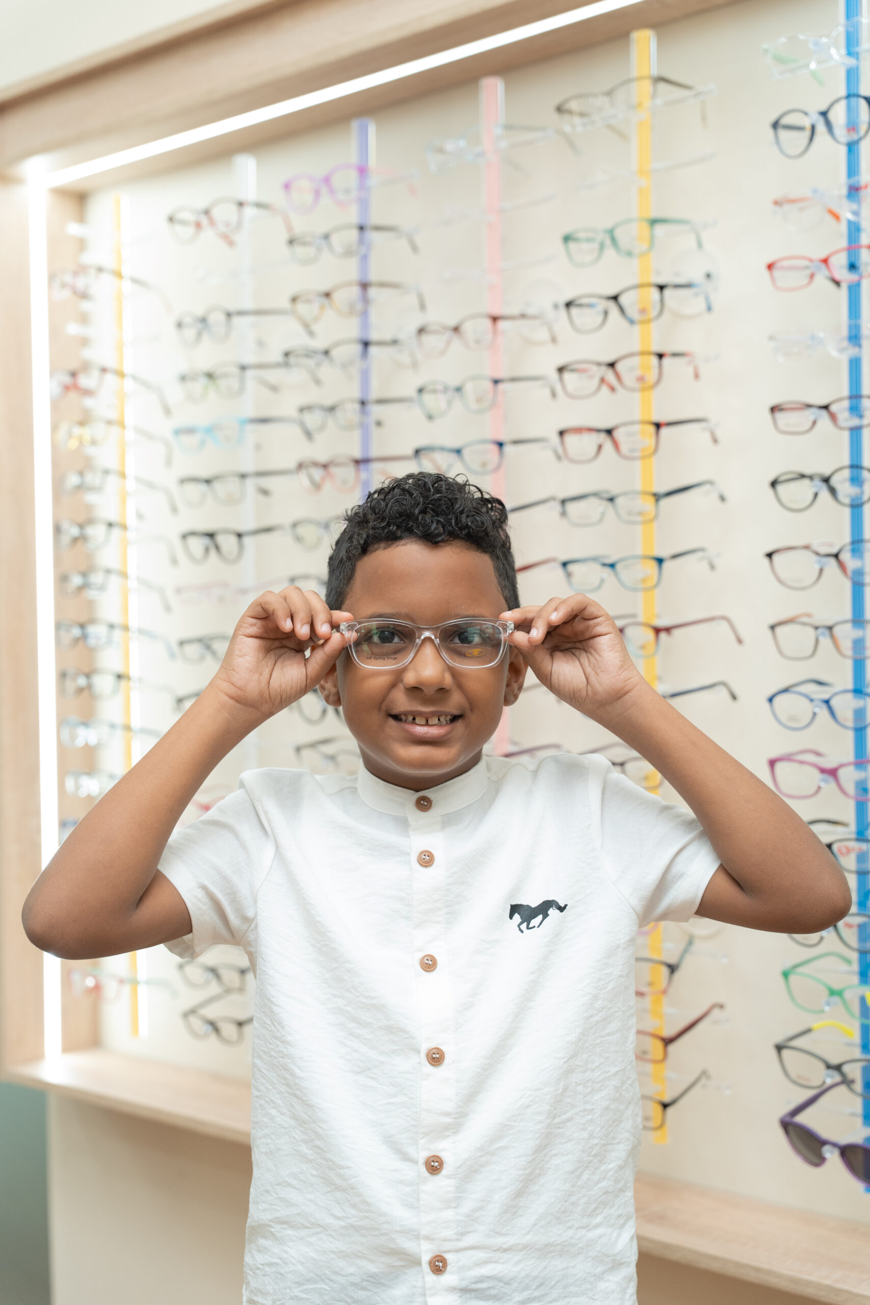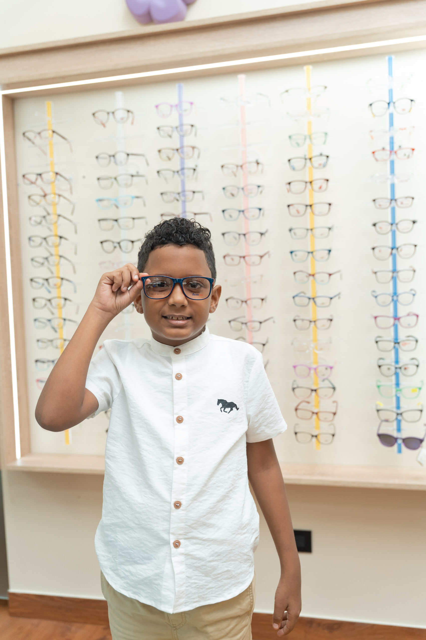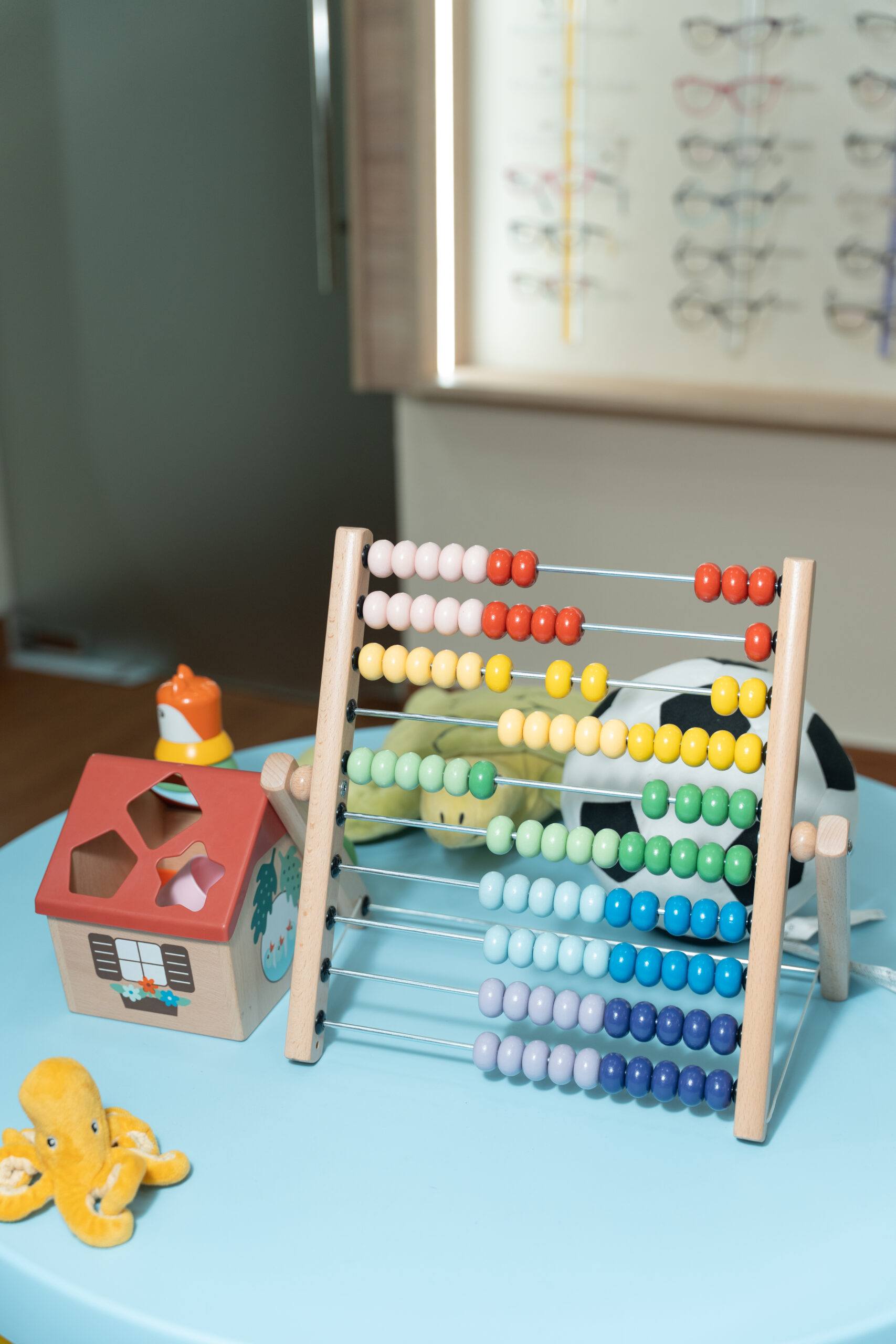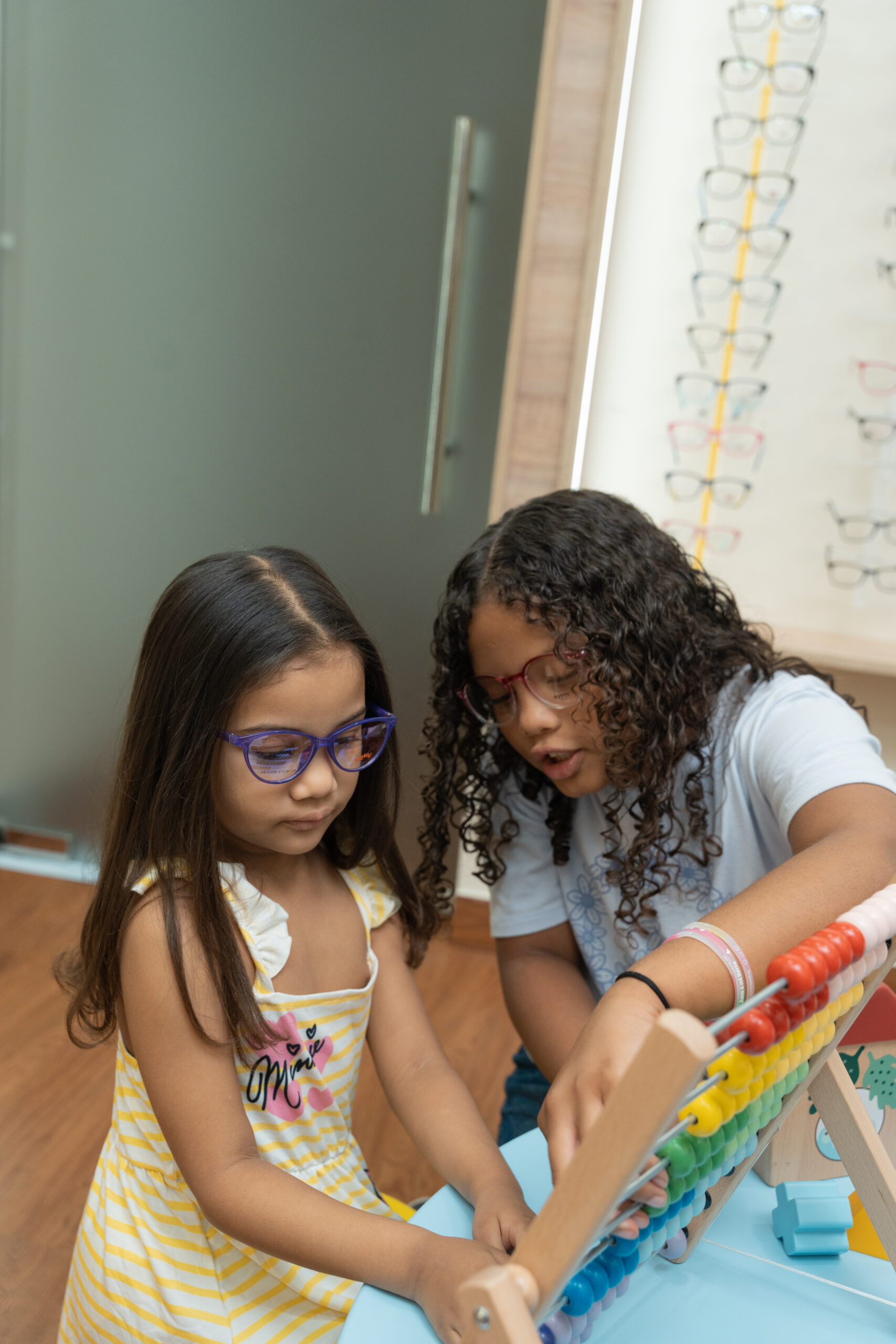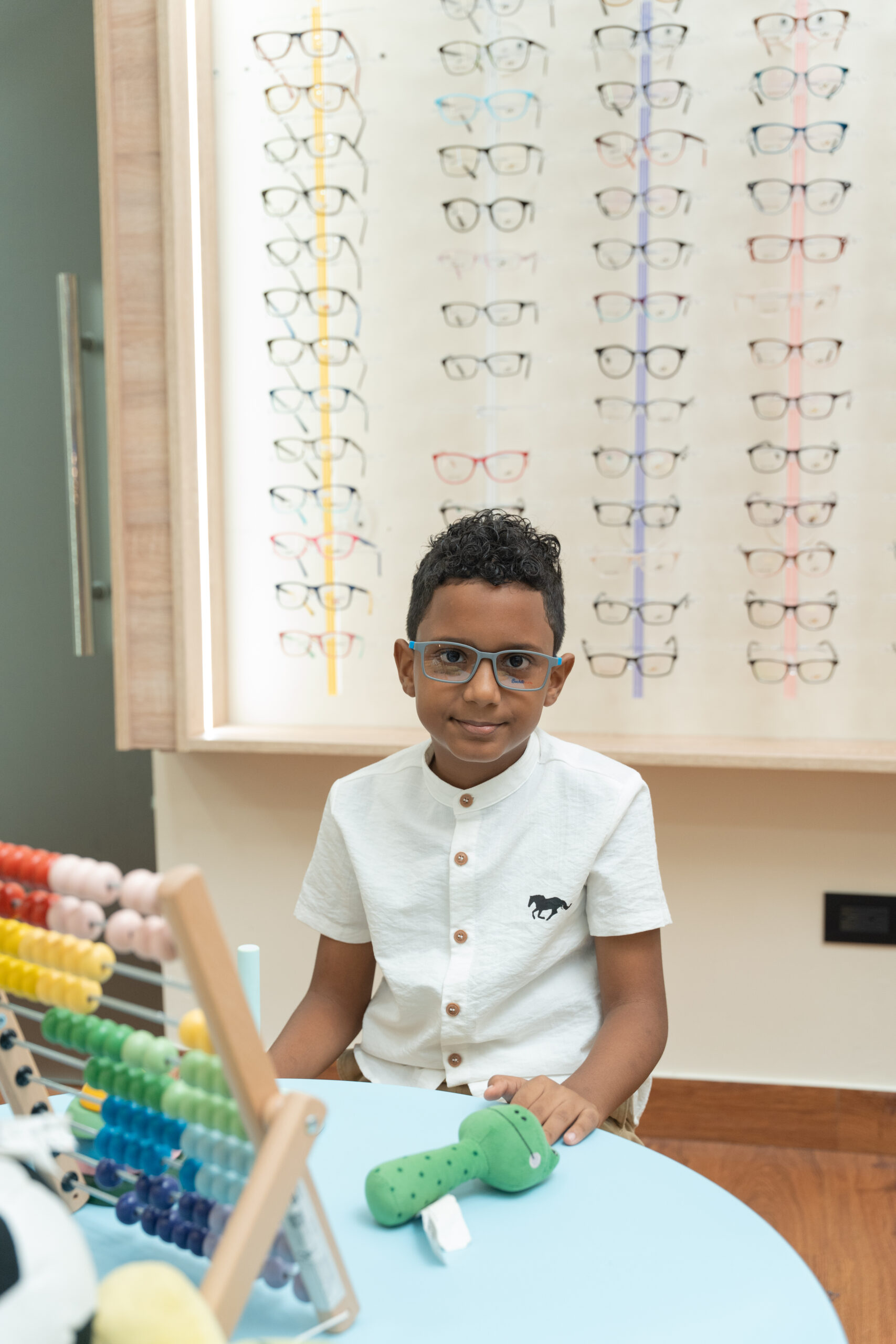 Es un espacio dedicado al cuidado visual infantil, con lentes y accesorios coloridos y resistentes.