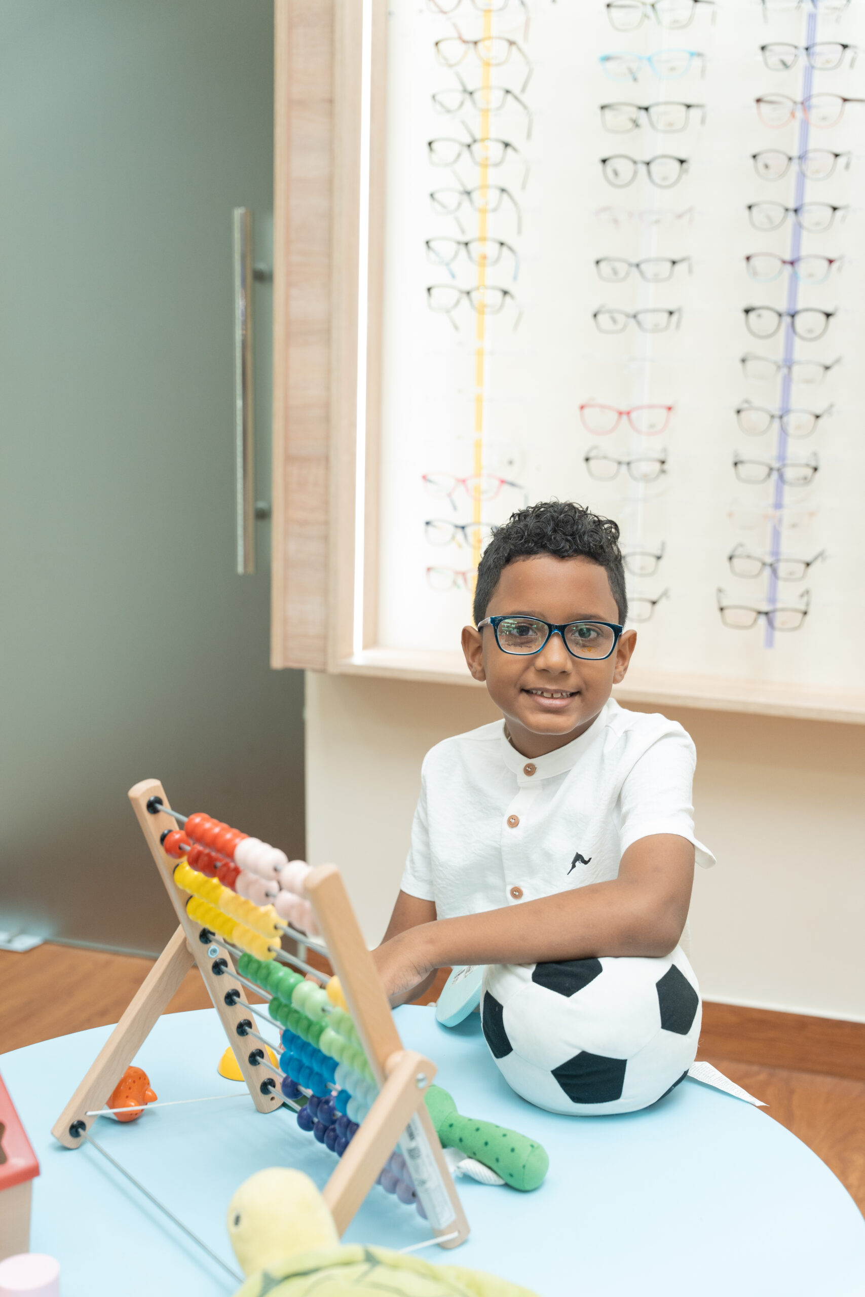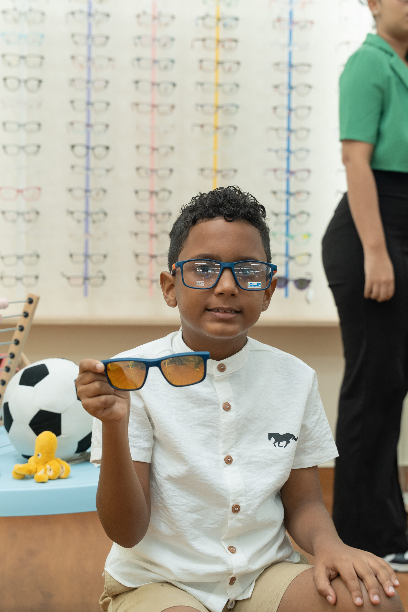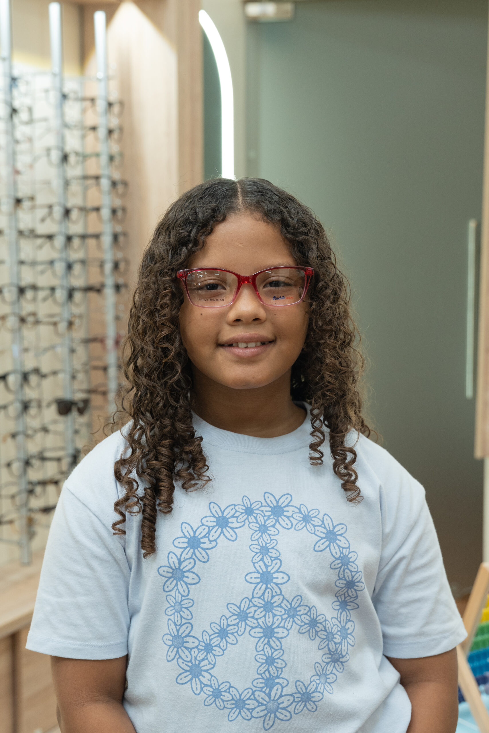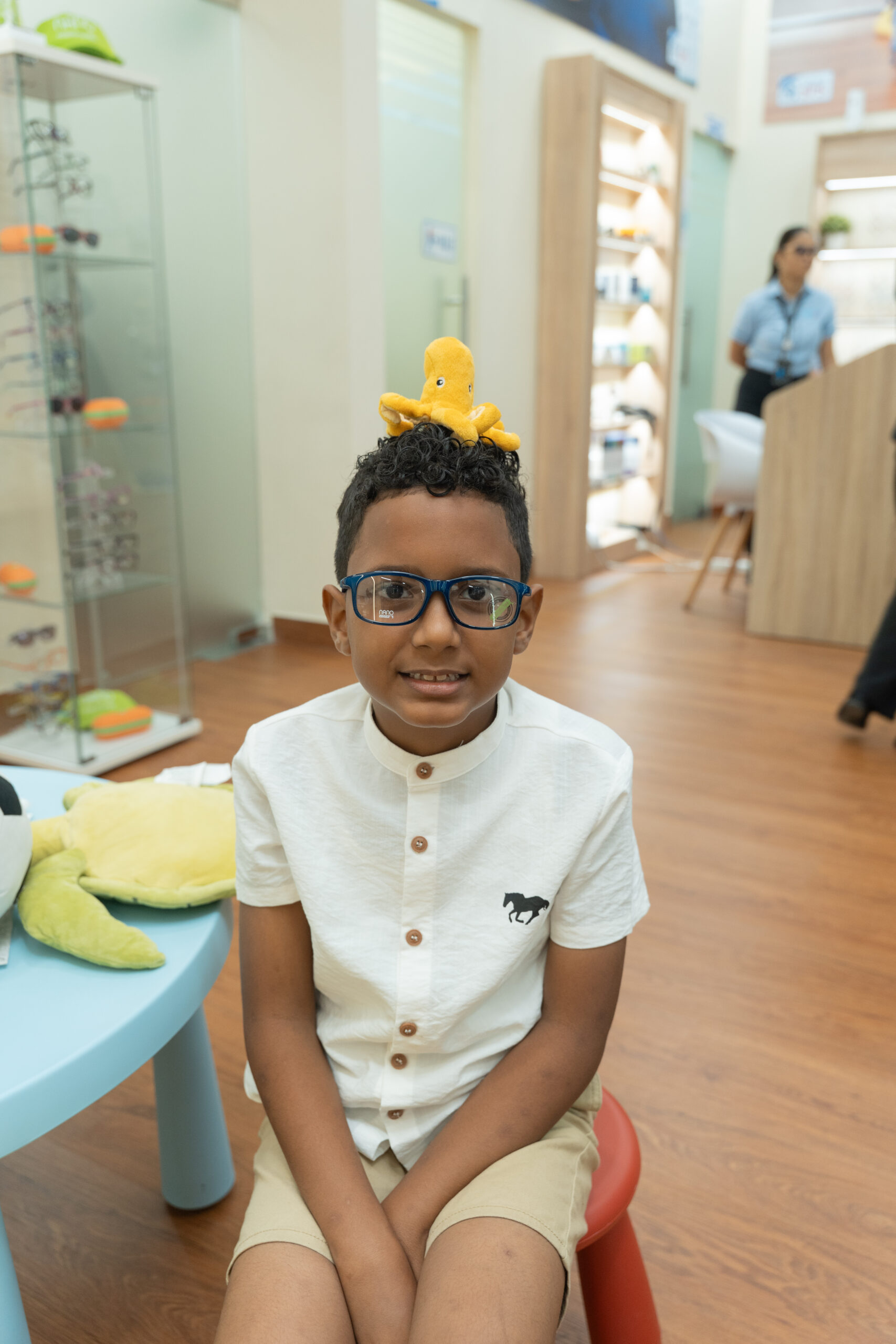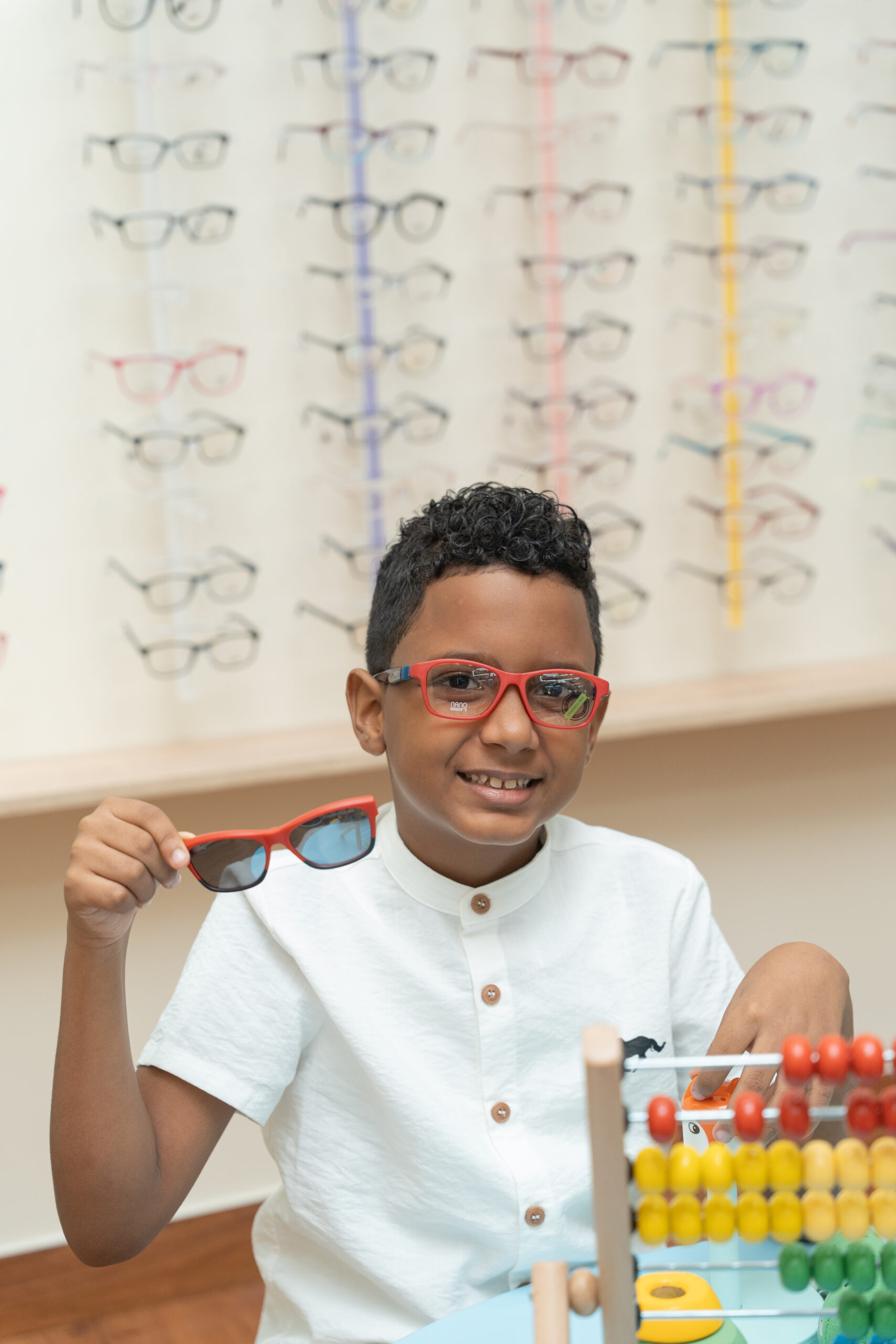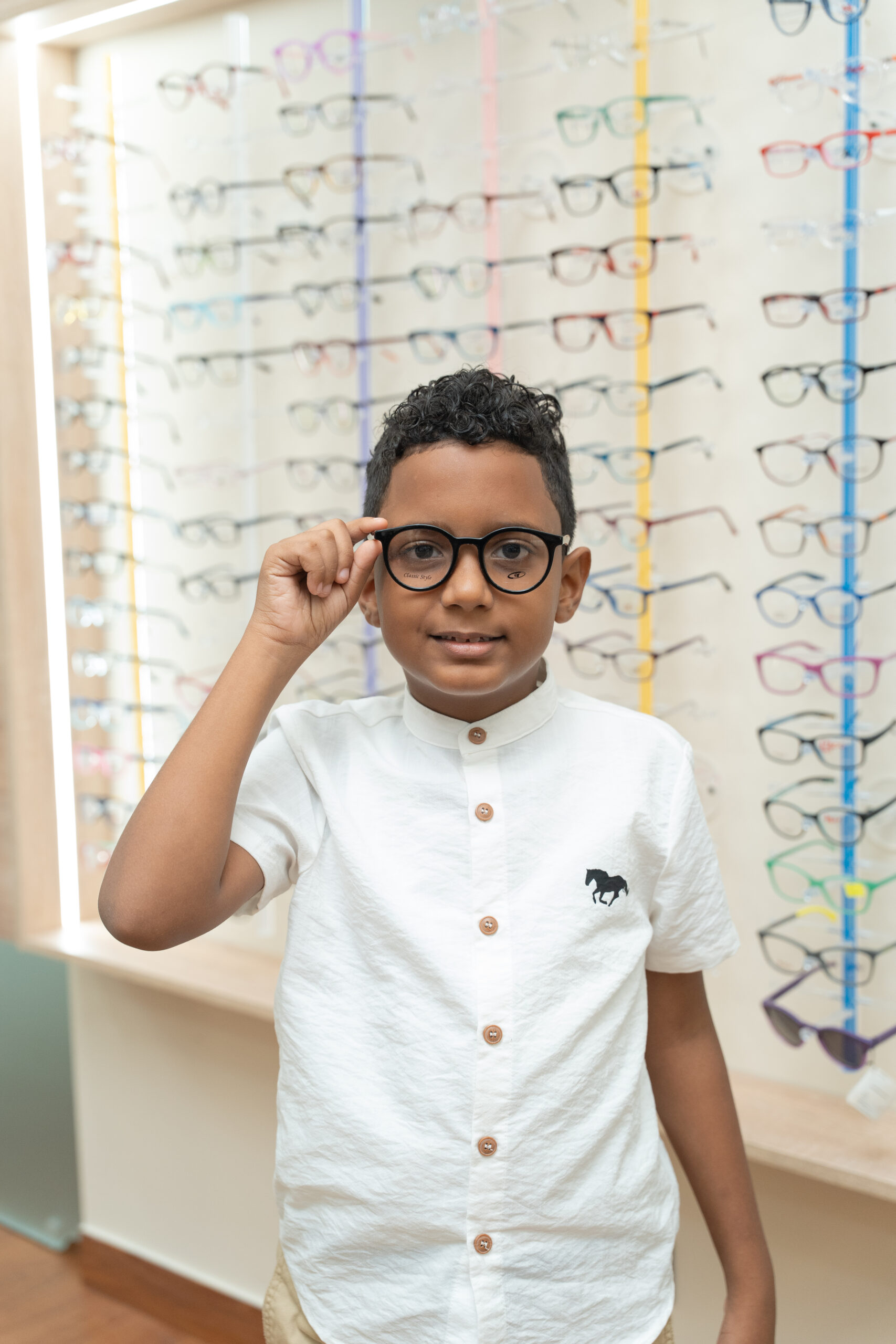Es un espacio dedicado al cuidado visual infantil, con lentes y accesorios coloridos y resistentes.