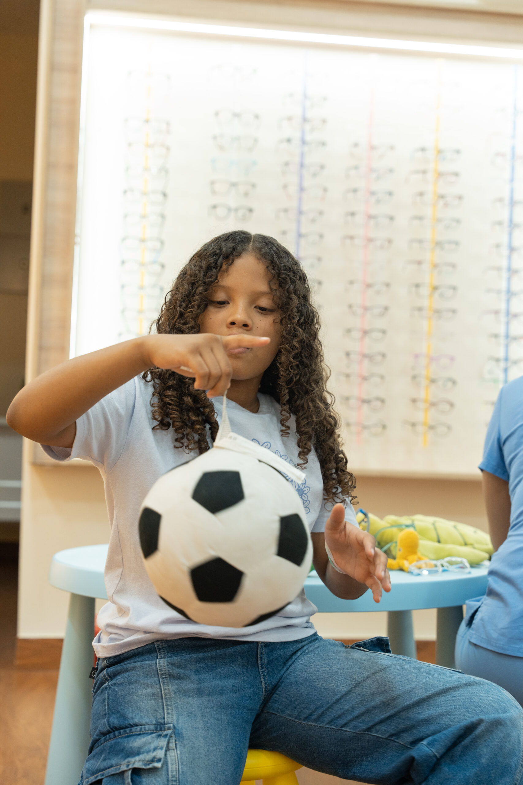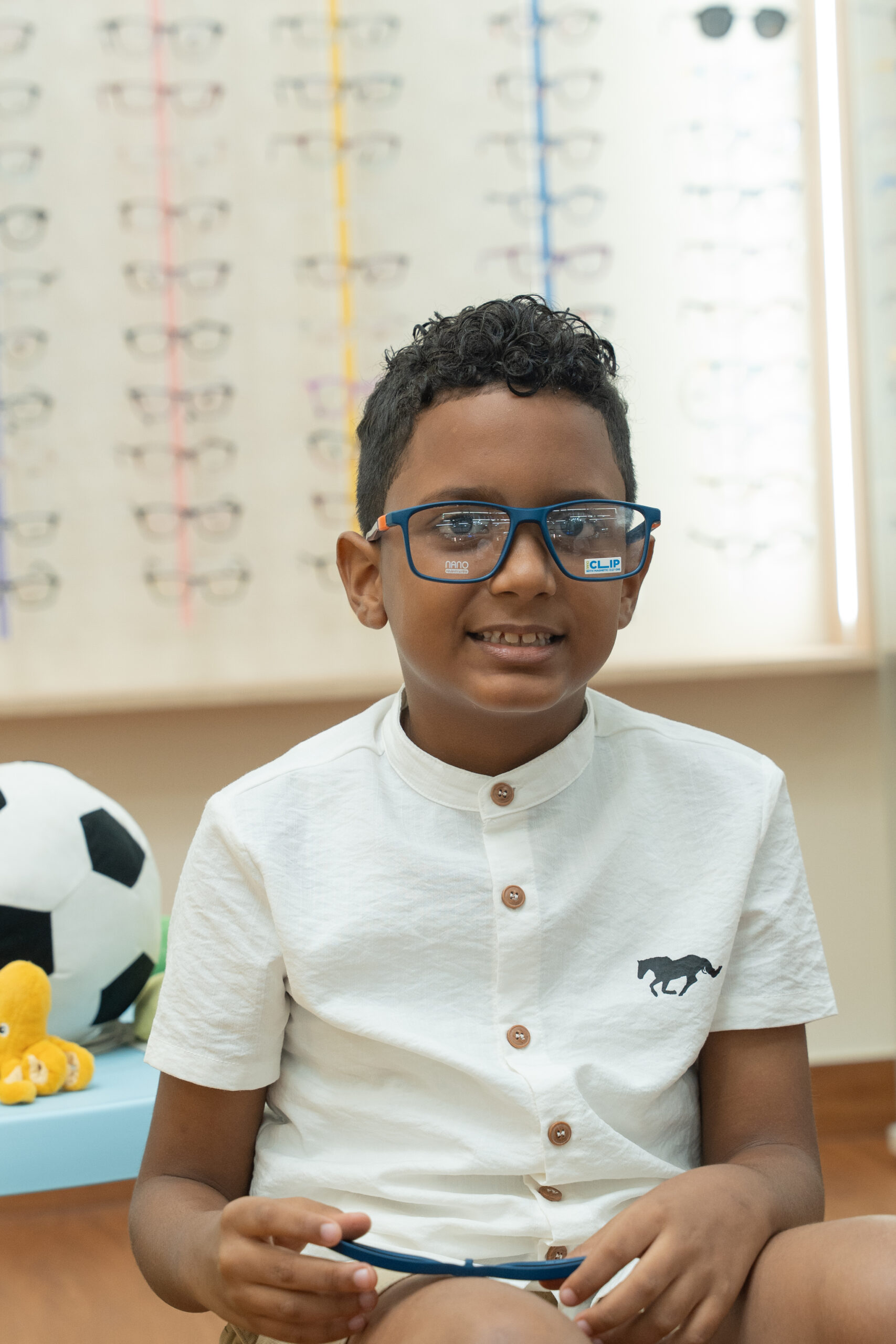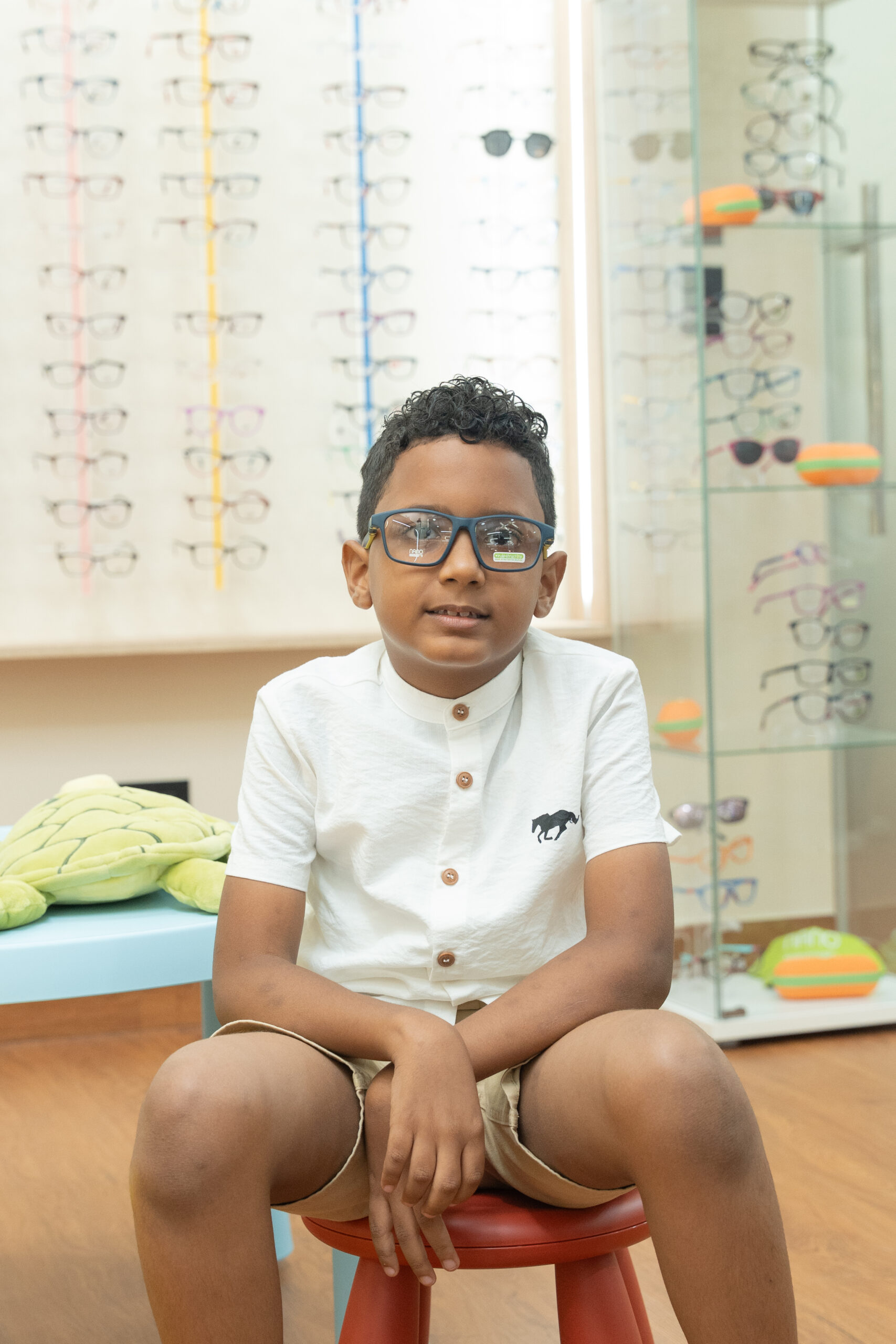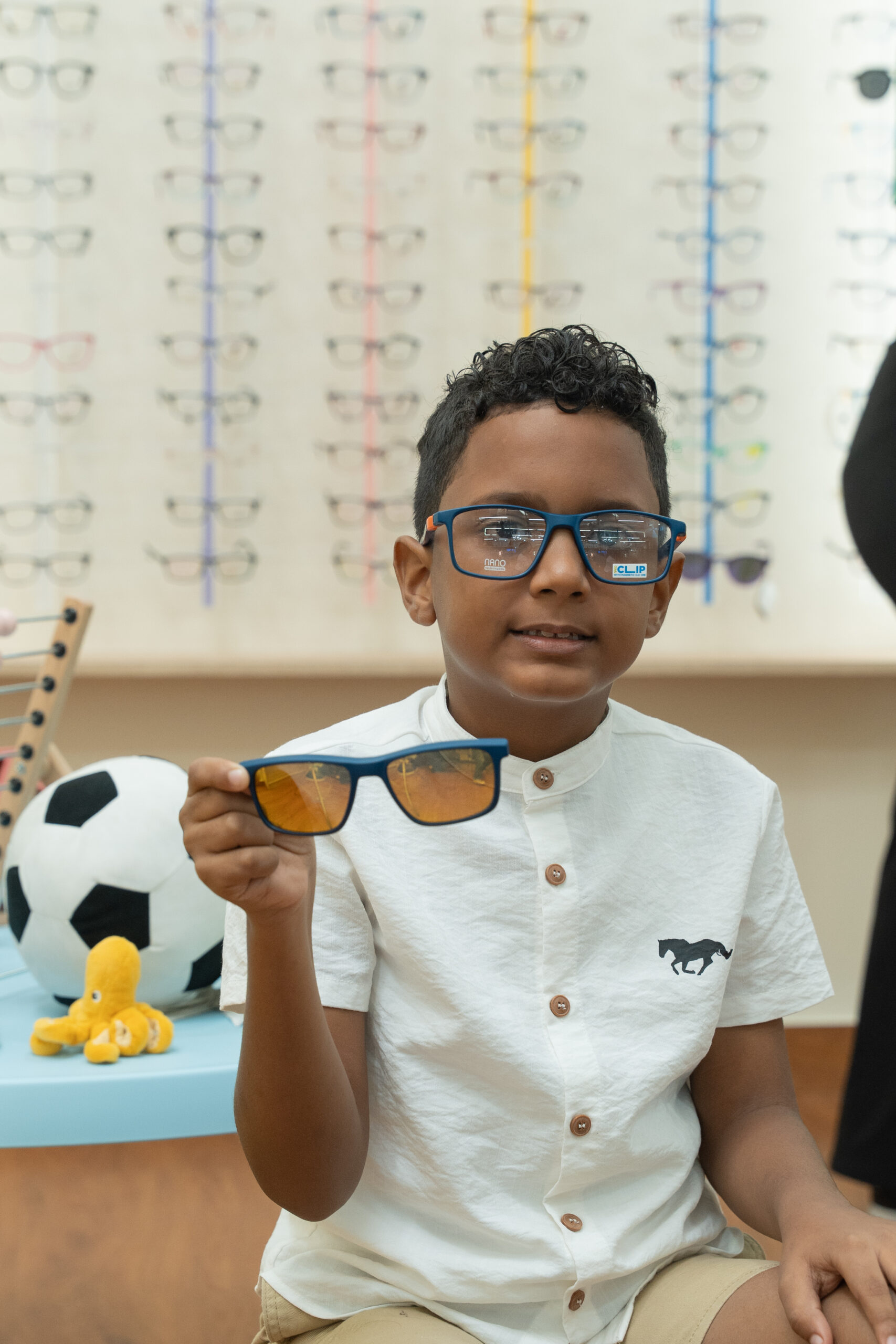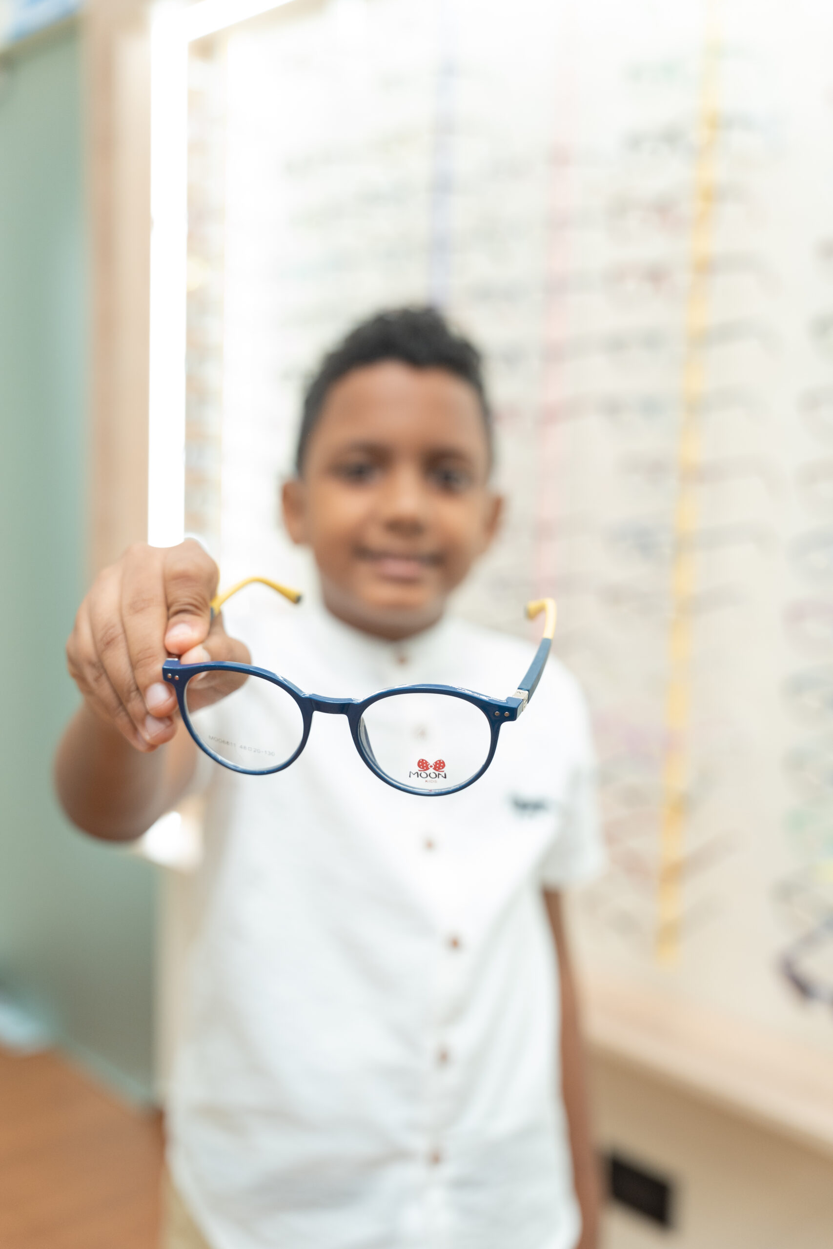 Es un espacio dedicado al cuidado visual infantil, con lentes y accesorios coloridos y resistentes.
