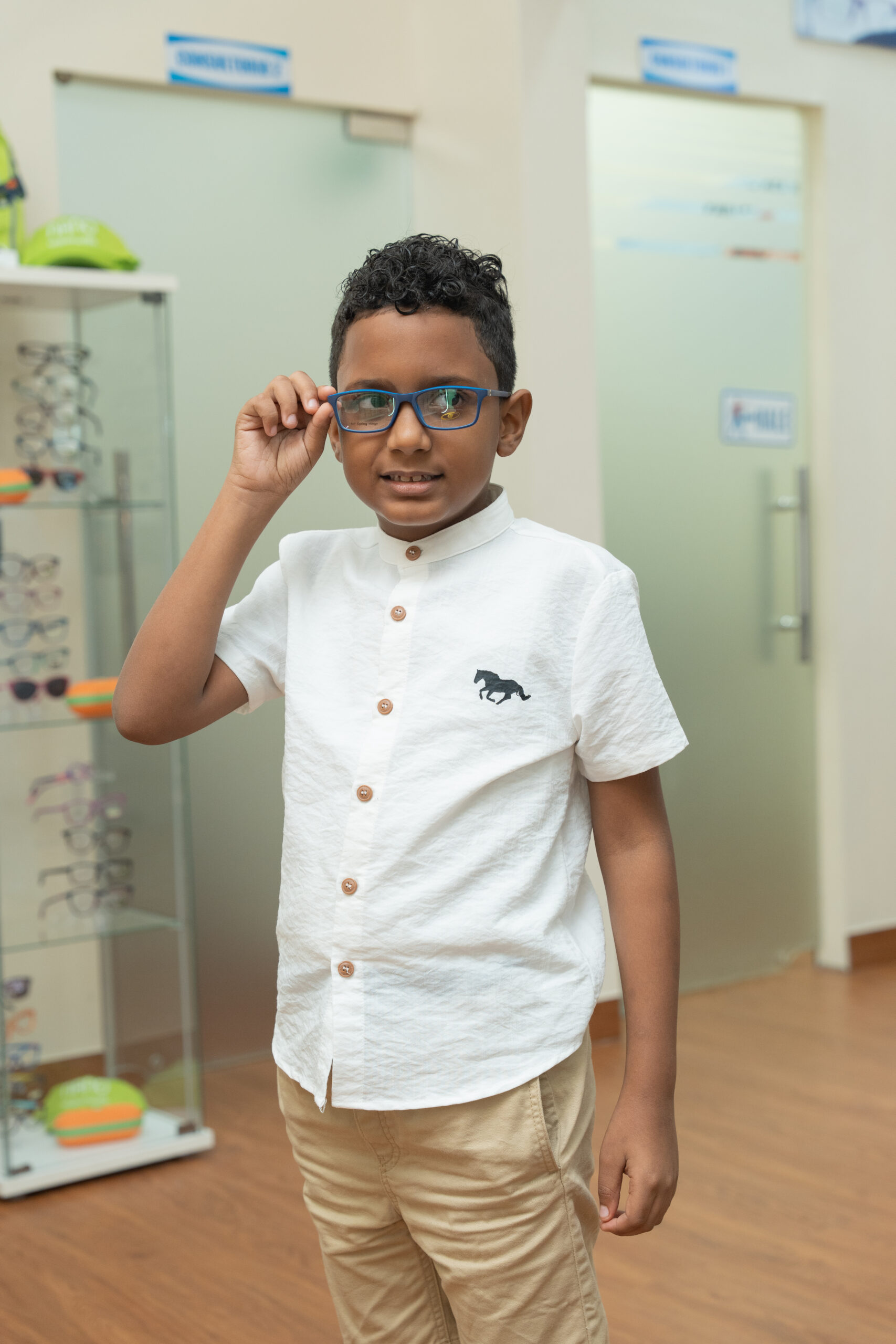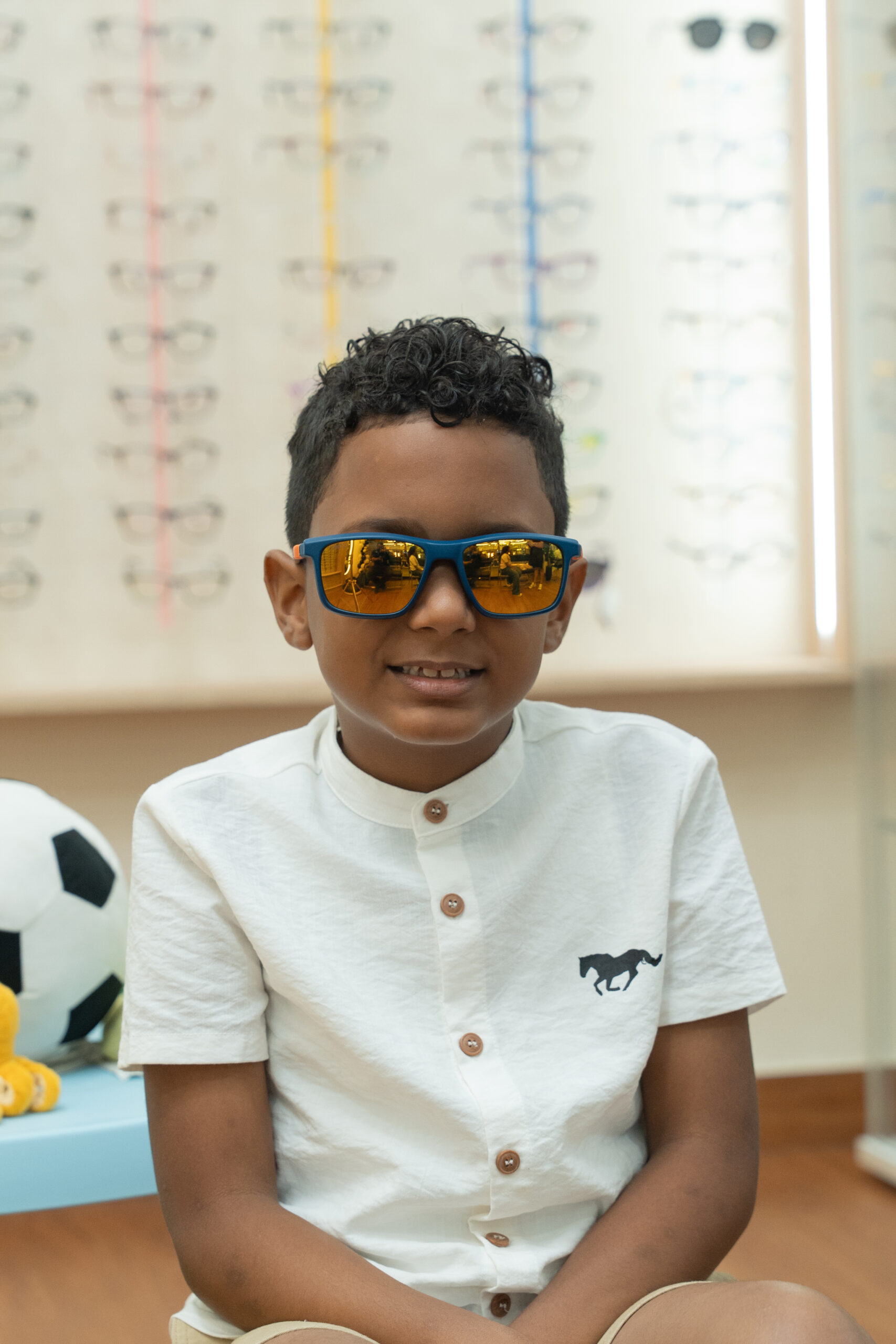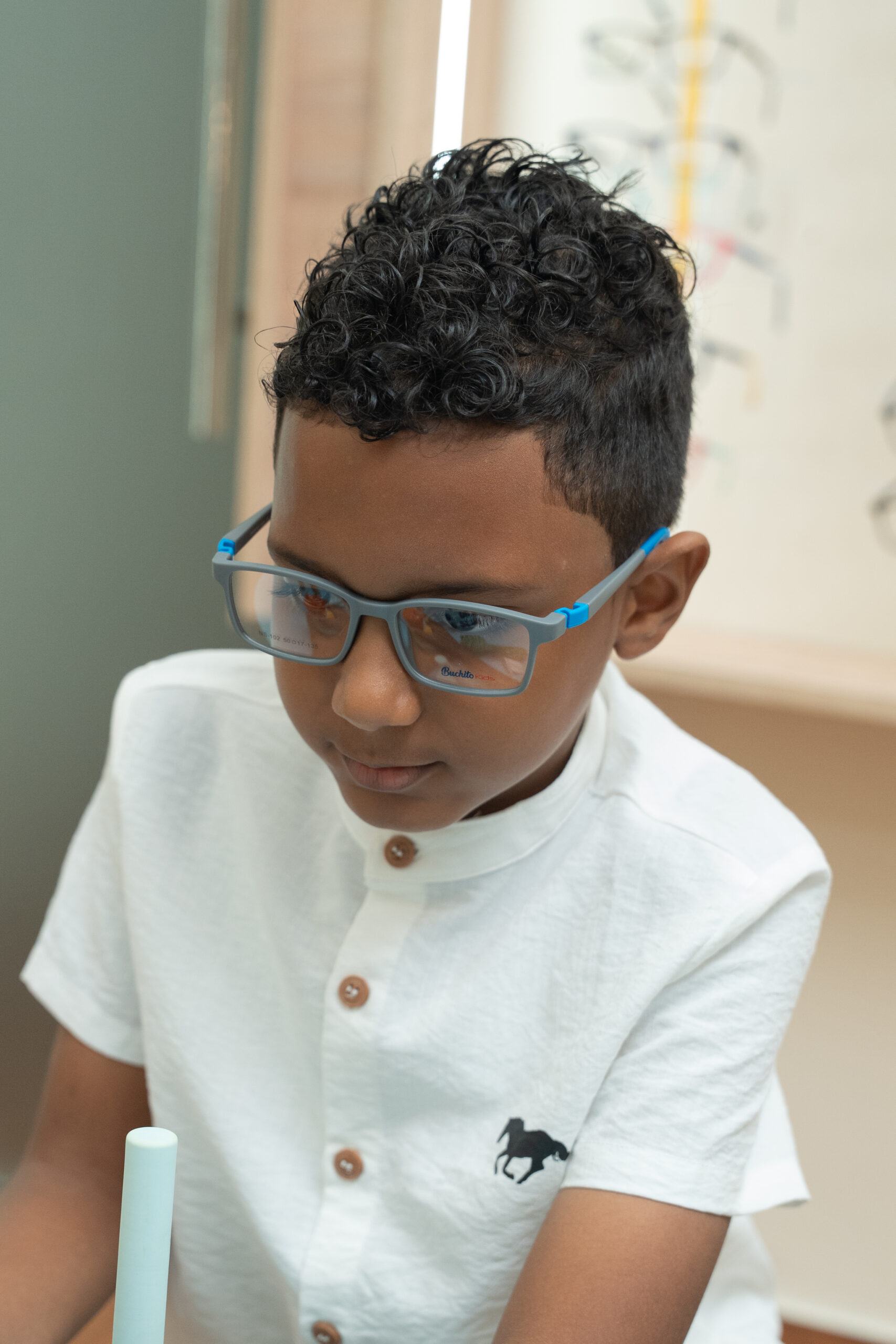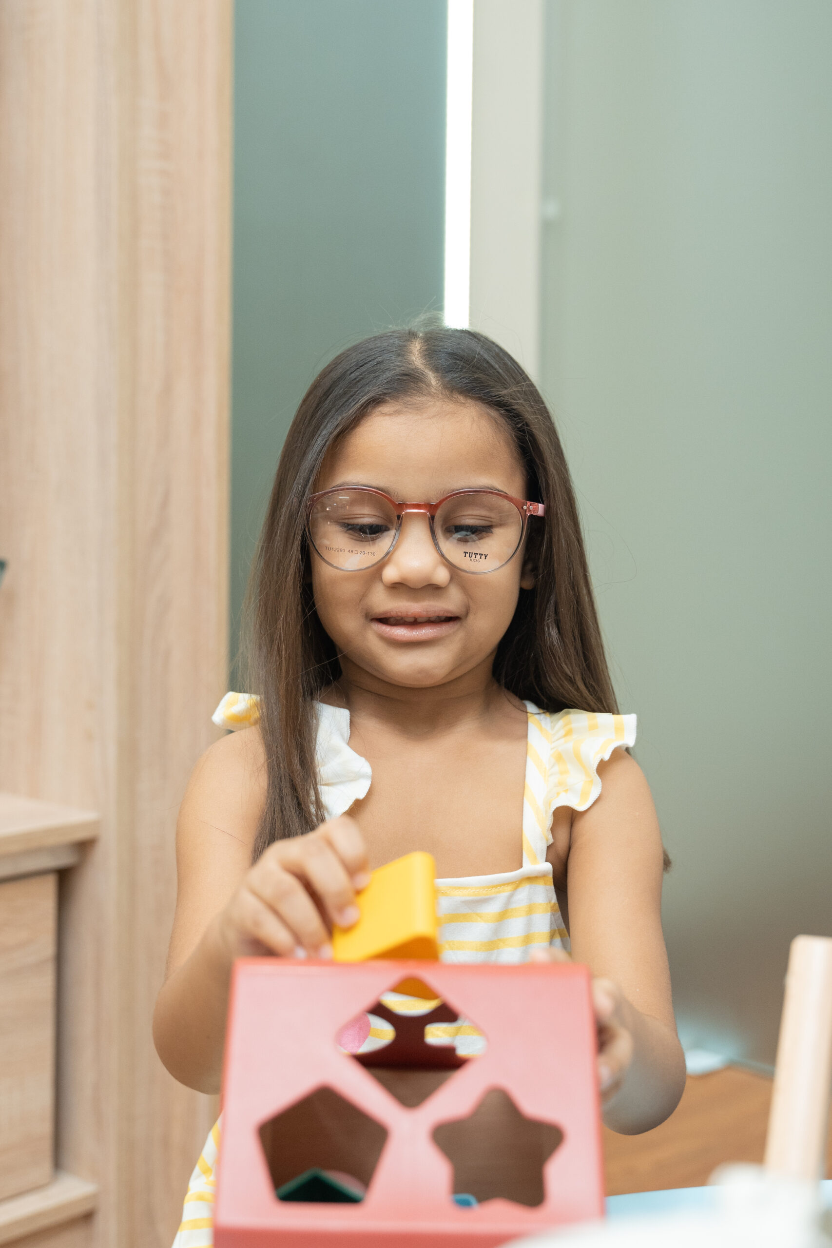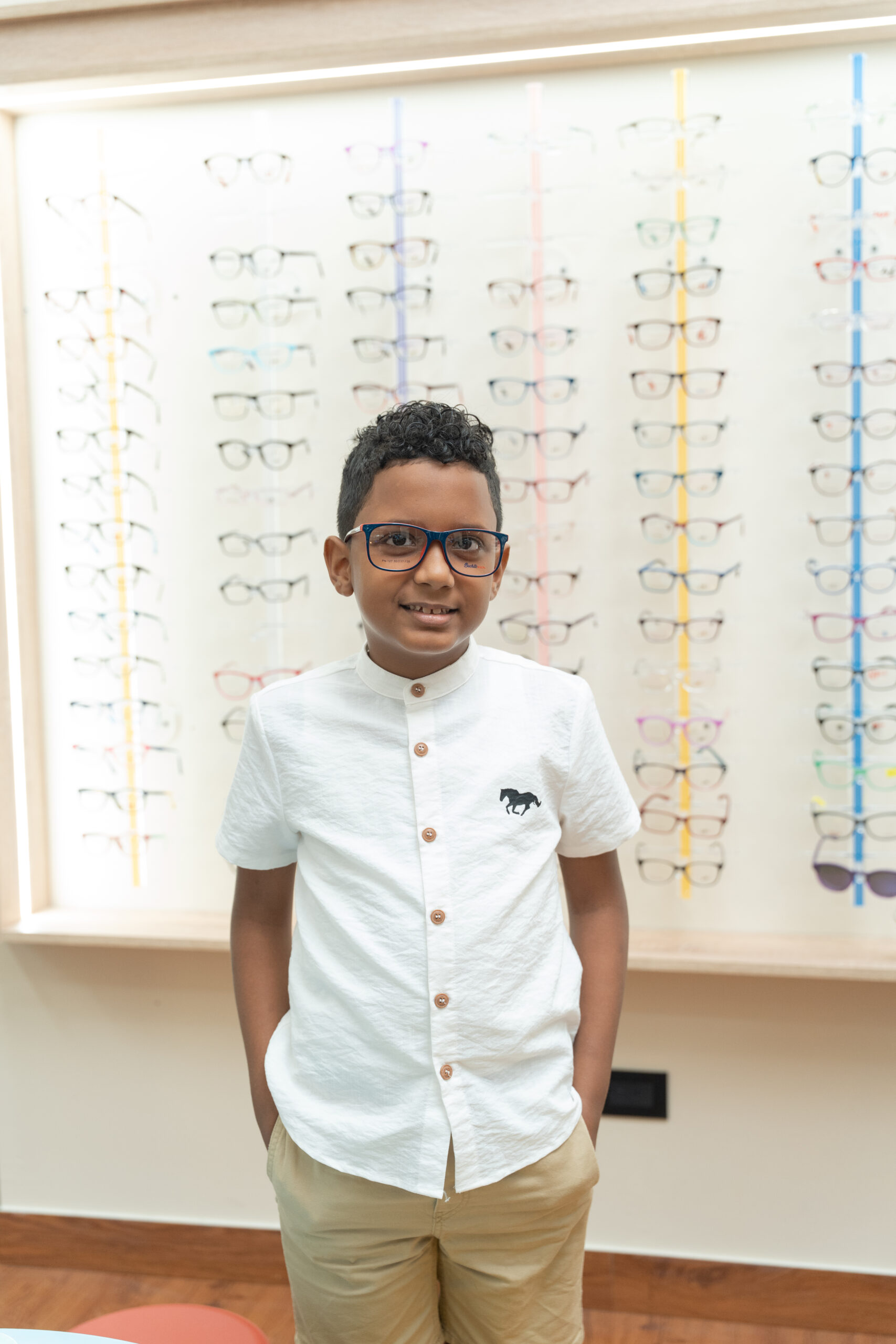 Es un espacio dedicado al cuidado visual infantil, con lentes y accesorios coloridos y resistentes.
