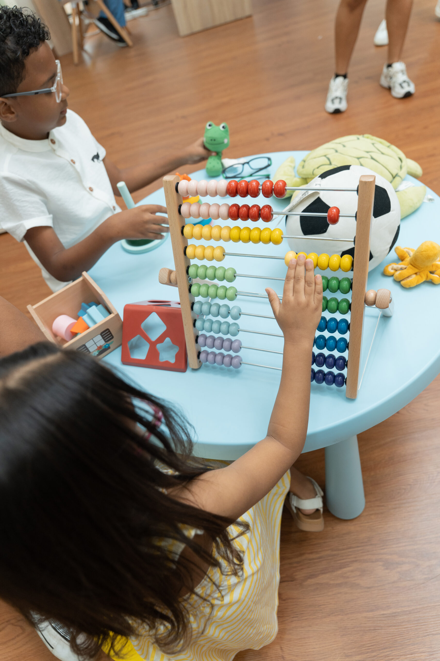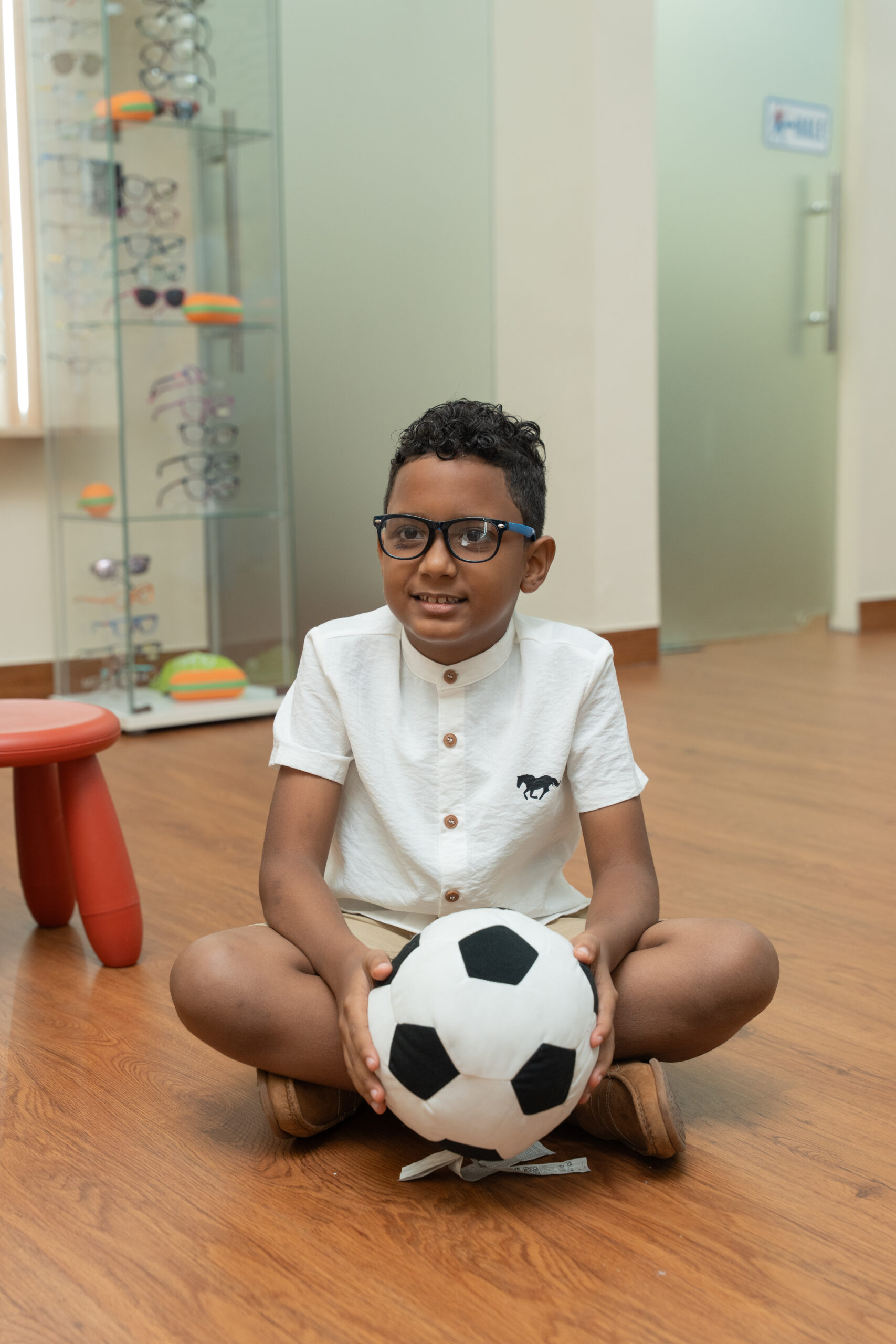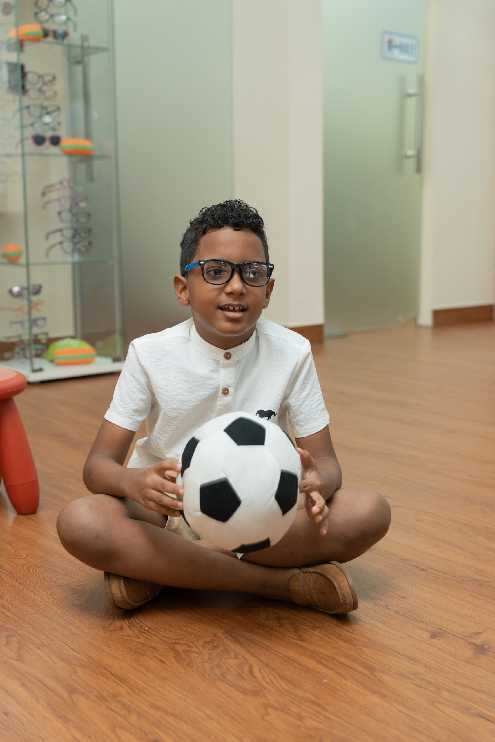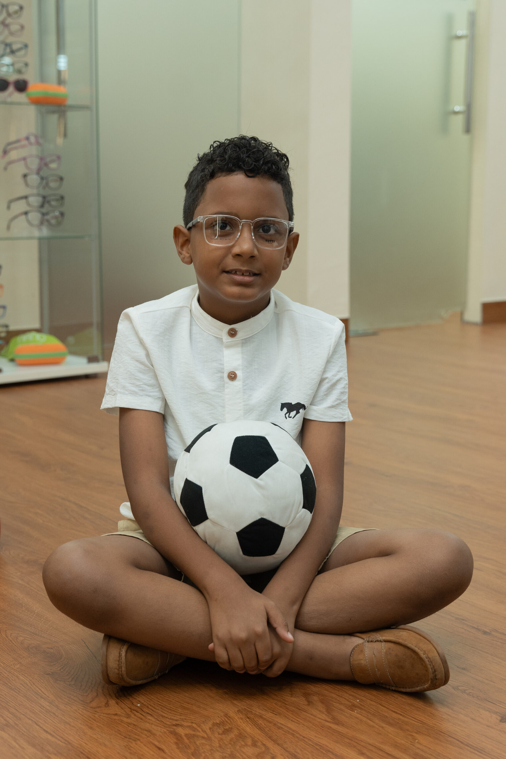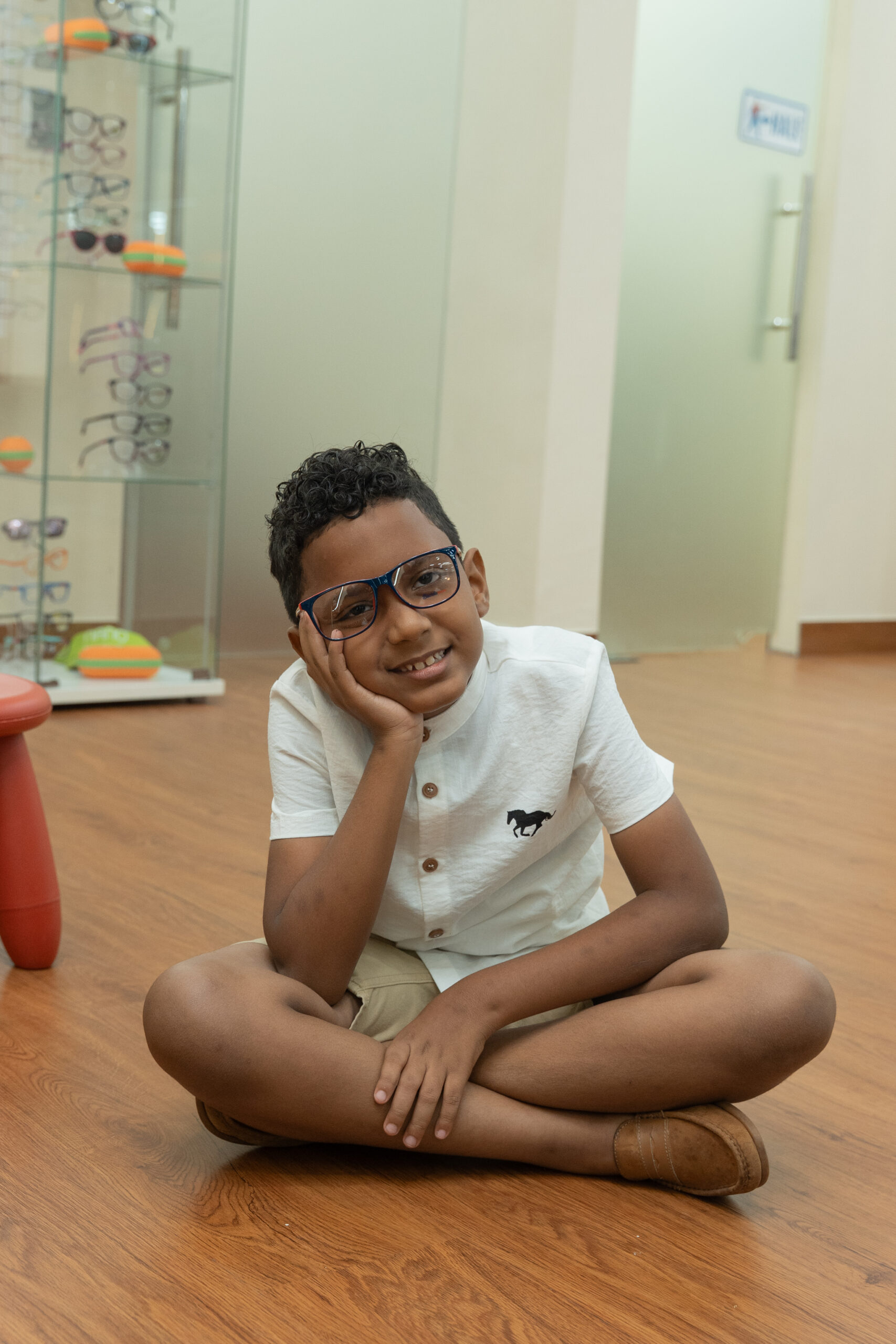 Es un espacio dedicado al cuidado visual infantil, con lentes y accesorios coloridos y resistentes.