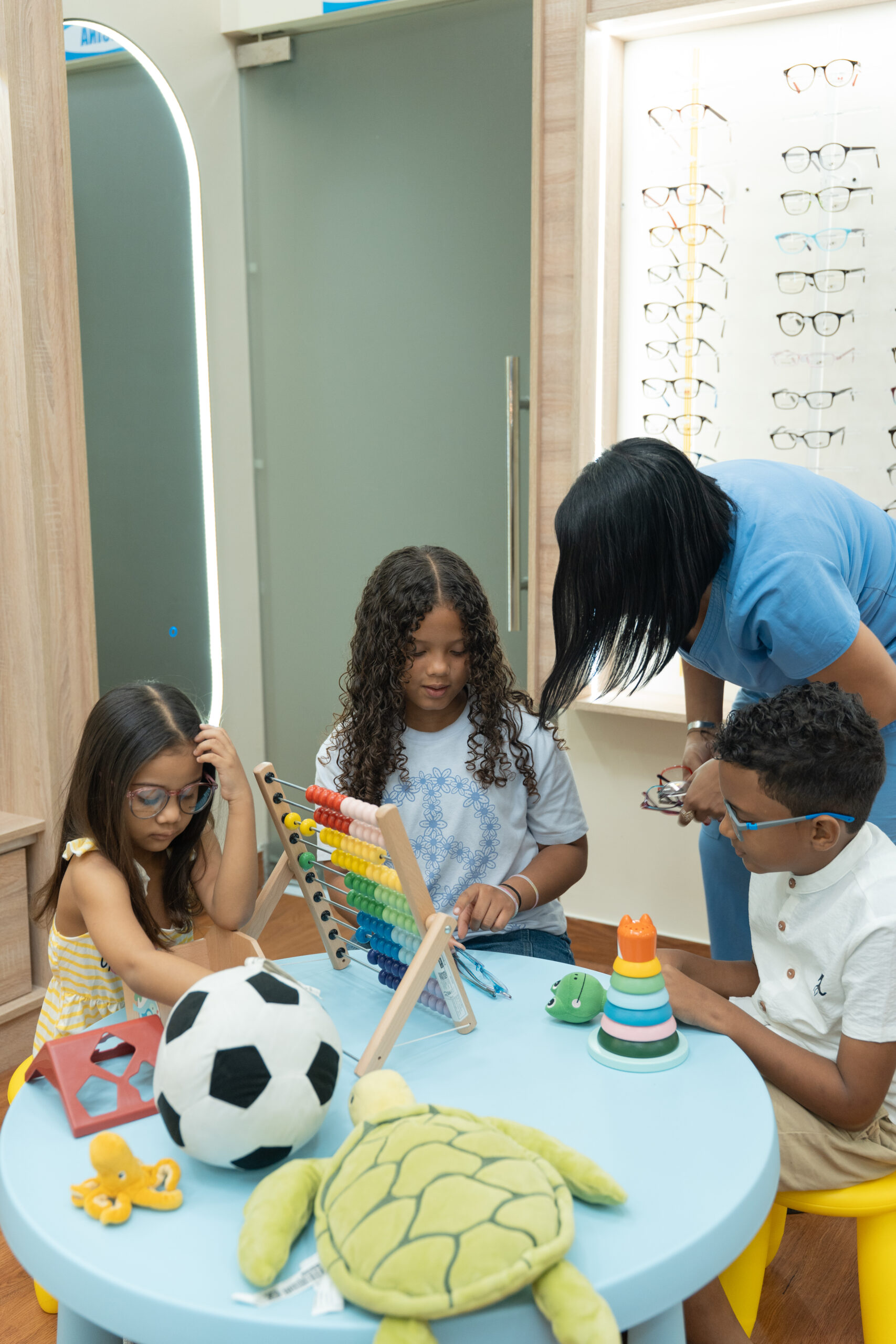 Ofrece atención especializada en visión infantil, incluyendo examen oftálmico los lunes y consultas con optometría todos los días desde las 2:00 p.m. Estamos ubicados en Sambil,